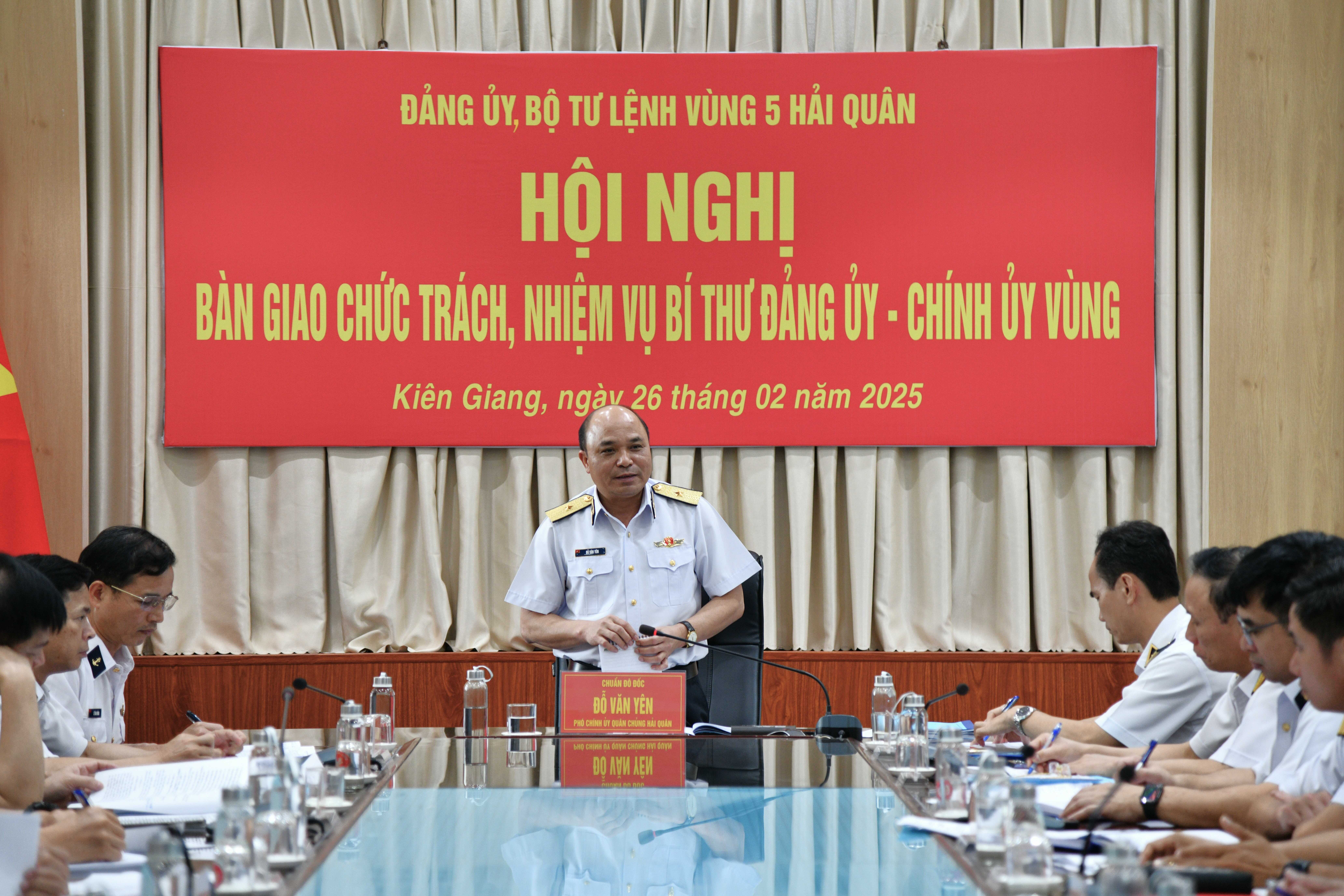 Tại hội nghị, đại diện Phòng Chính trị, Bộ Tư lệnh Vùng 5 Hải quân đã trình bày biên bản bàn giao chức trách, nhiệm vụ Bí thư Đảng ủy, Chính ủy Vùng 5 Hải quân giữa Chuẩn Đô đốc Nguyễn Hữu Thoan (người bàn giao) và Đại tá Ngô Văn Thành (người nhận bàn giao), bao gồm các mặt công tác: tham mưu, chính trị, hậu cần – kỹ thuật và những công việc cần tiếp tục giải quyết.