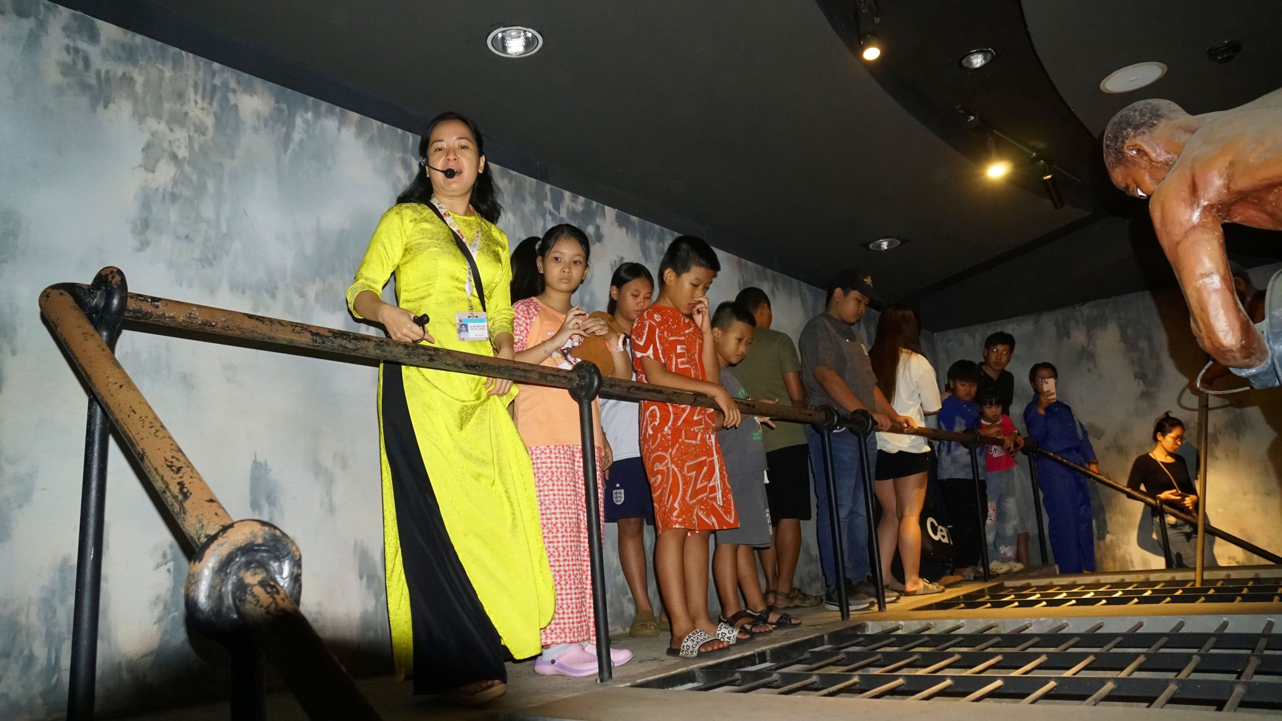 Tầng hai đưa người xem bước vào bối cảnh của hai cuộc kháng chiến chống thực dân Pháp và đế quốc Mỹ. Các hiện vật, hình ảnh, tư liệu lịch sử được sắp xếp công phu, giúp người xem cảm nhận rõ nét tinh thần yêu nước và sự hy sinh của thế hệ cha anh. Nhiều câu chuyện được kể lại bằng hình ảnh và lời thuyết minh từ những người làm công tác bảo tàng, trong đó có những khoảnh khắc khiến người nghe không khỏi xúc động. Khi nói về những khó khăn, vất vả và đặc biệt là những hình thức tra tấn tàn khốc mà các chiến sĩ đã trải qua tại nhà tù Côn Đảo, thuyết minh viên không giấu được sự nghẹn ngào. Chính sự chân thành và cảm xúc trong lời kể đã tạo nên sợi dây kết nối giữa quá khứ và hiện tại, giúp người nghe – đặc biệt là các em nhỏ – không chỉ hiểu mà còn cảm nhận sâu sắc về những hy sinh của thế hệ đi trước.