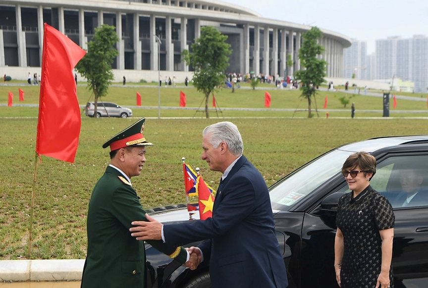 Thượng tướng Nguyễn Trường Thắng chào đón Bí thư Thứ nhất, Chủ tịch Cuba Miguel Díaz-Canel Bermúdez.