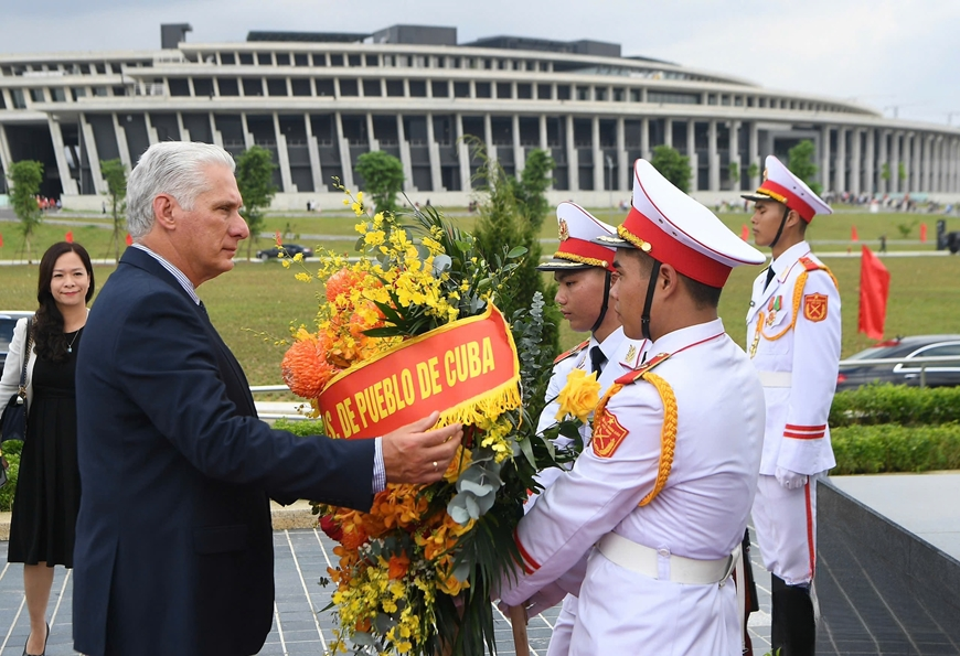 Bí thư Thứ nhất, Chủ tịch Cuba Miguel Díaz-Canel Bermúdez đặt hoa tại Tượng đài.