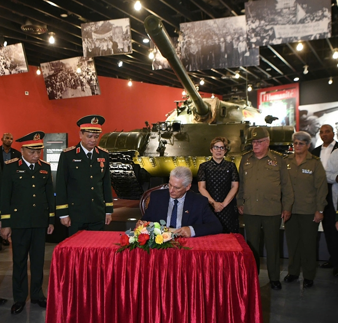 Kết thúc chuyến tham quan, Bí thư Thứ nhất, Chủ tịch nước Cuba Miguel Díaz-Canel Bermúdez đã ghi vào Sổ vàng lưu niệm, khẳng định Bảo tàng Lịch sử Quân sự Việt Nam là minh chứng sống động cho tinh thần anh hùng và ý chí quật cường của nhân dân Việt Nam. Ông thay mặt Đảng, Chính phủ và nhân dân Cuba bày tỏ lòng tri ân sâu sắc tới các thế hệ người Việt Nam đã cống hiến vì độc lập, tự do của dân tộc, đồng thời nhấn mạnh rằng những trang sử của Việt Nam luôn là nguồn cảm hứng để Cuba tiếp tục con đường đấu tranh vì chủ quyền và công bằng xã hội.
