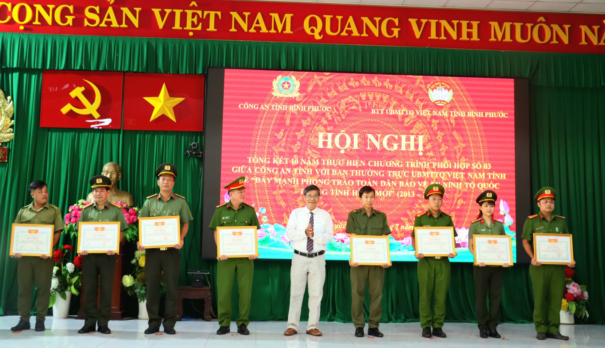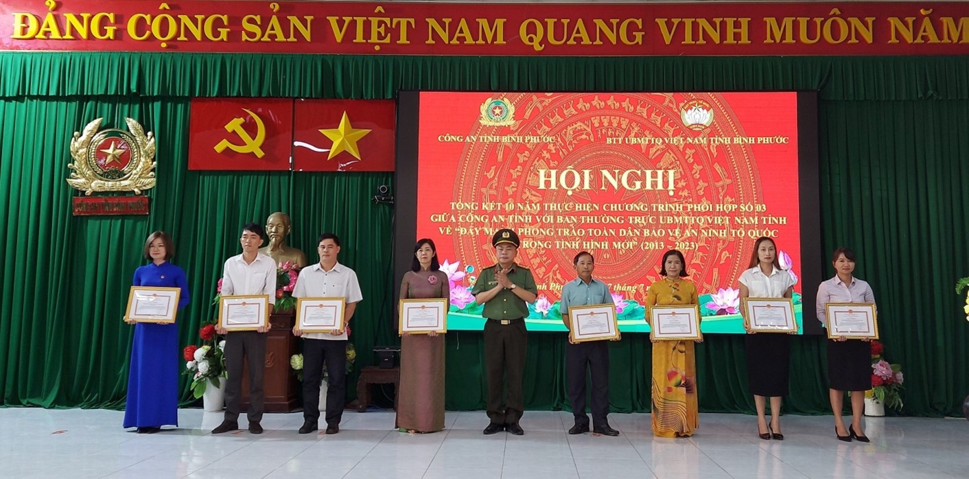 Cũng tại sự kiện lần này, Chủ tịch UBND, Chủ tịch Ủy ban MTTQ tỉnh đã tiến hành trao tặng Bằng khen cho 05 tập thể và 10 cá nhân ưu tú. Bên cạnh đó, Giám đốc Công an tỉnh cũng tặng Giấy khen cho 15 tập thể và 17 cá nhân hoàn thành xuất sắc nhiệm vụ trong công tác thực hiện Chương trình phối hợp số 09 giai đoạn 2013 – 2023.