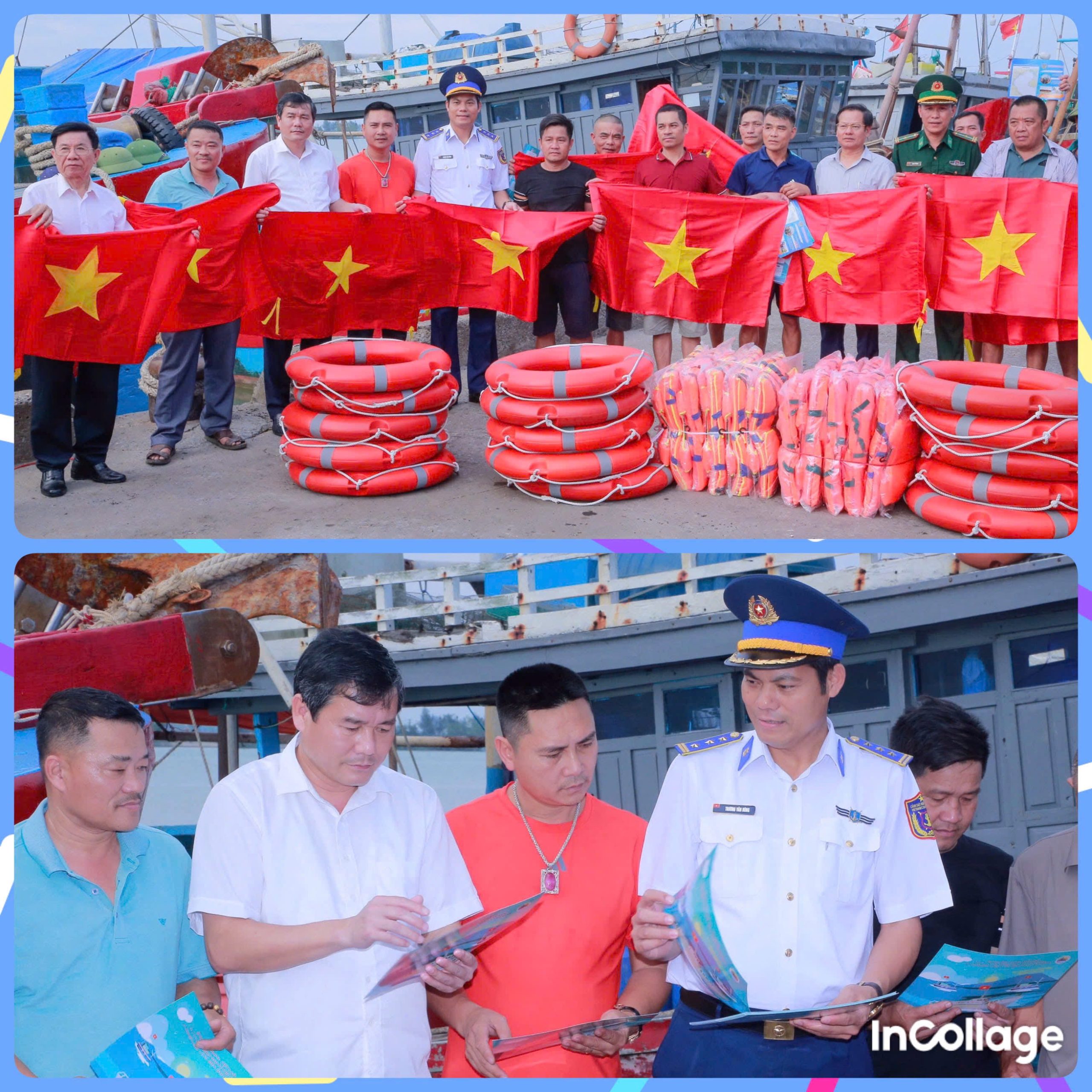 Bộ Tư lệnh Vùng Cảnh sát biển 1 tổ chức tuyên truyền IUU kết hợp hỗ trợ phương tiện cứu sinh và nhu yếu phẩm cho ngư dân tại cảng Lạch Hới