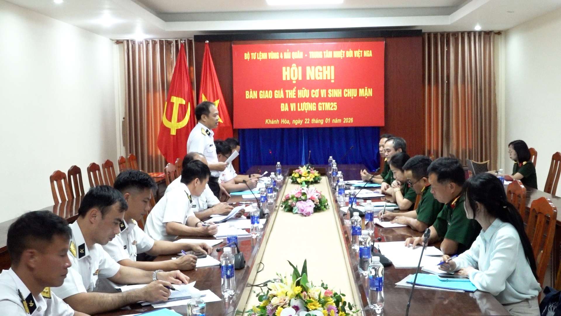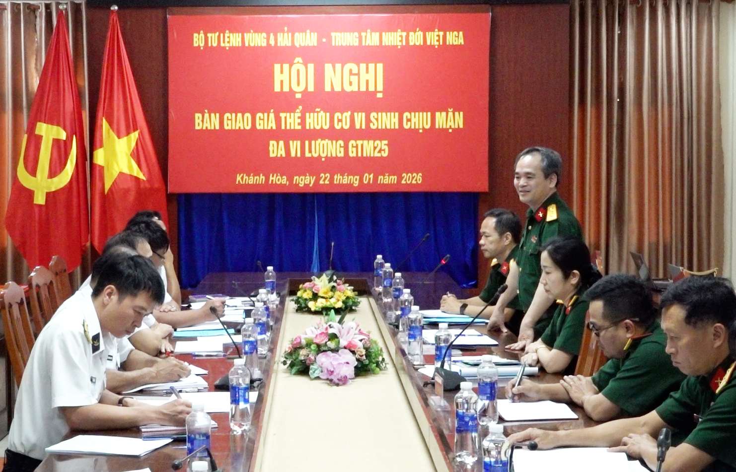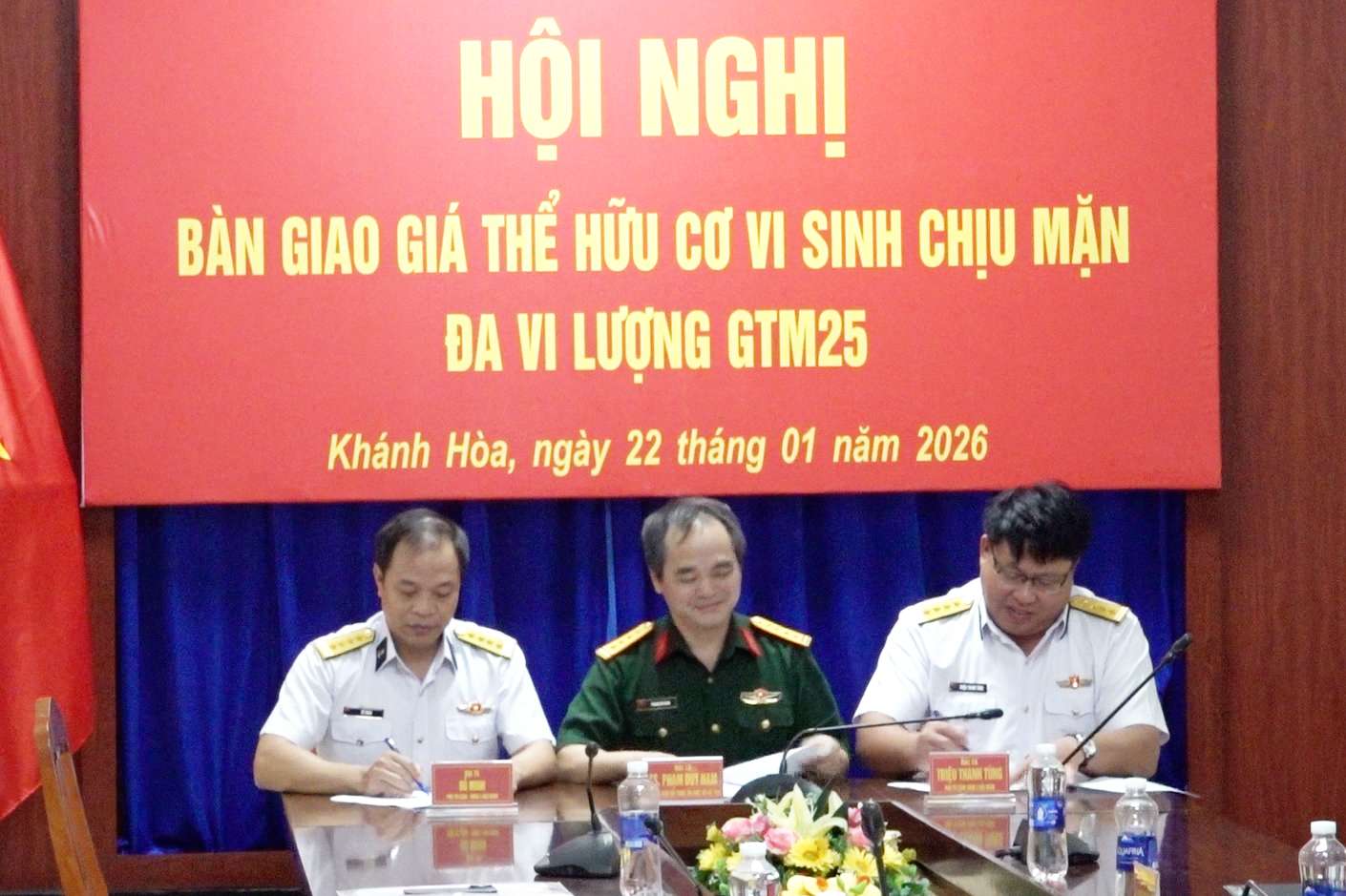 Hội nghị được tổ chức nhằm bàn giao 45 tấn giá thể hữu cơ vi sinh GTM25, trong đó 30 tấn cho Bộ Tư lệnh Vùng 4 Hải quân và 15 tấn cho Bộ Tư lệnh Vùng 2 Hải quân, bảo đảm đủ số lượng, chất lượng, an toàn, đúng thủ tục và nguyên tắc theo quy định.