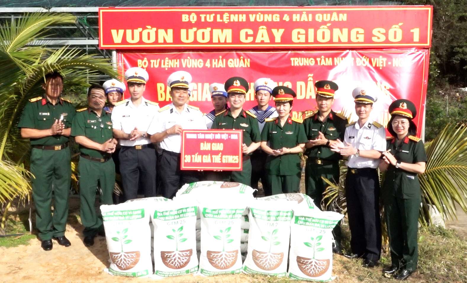Bộ Tư lệnh Vùng 4 Hải quân bàn giao giá thể hữu cơ vi sinh chịu mặn GTM25