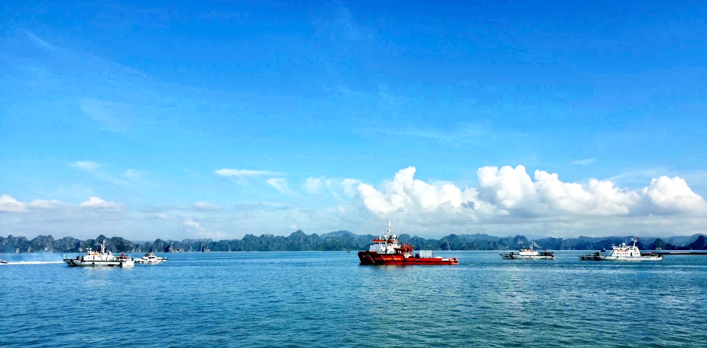 Các tàu của Vùng Cảnh sát biển 1 tham gia đợt diễn tập trên biển.