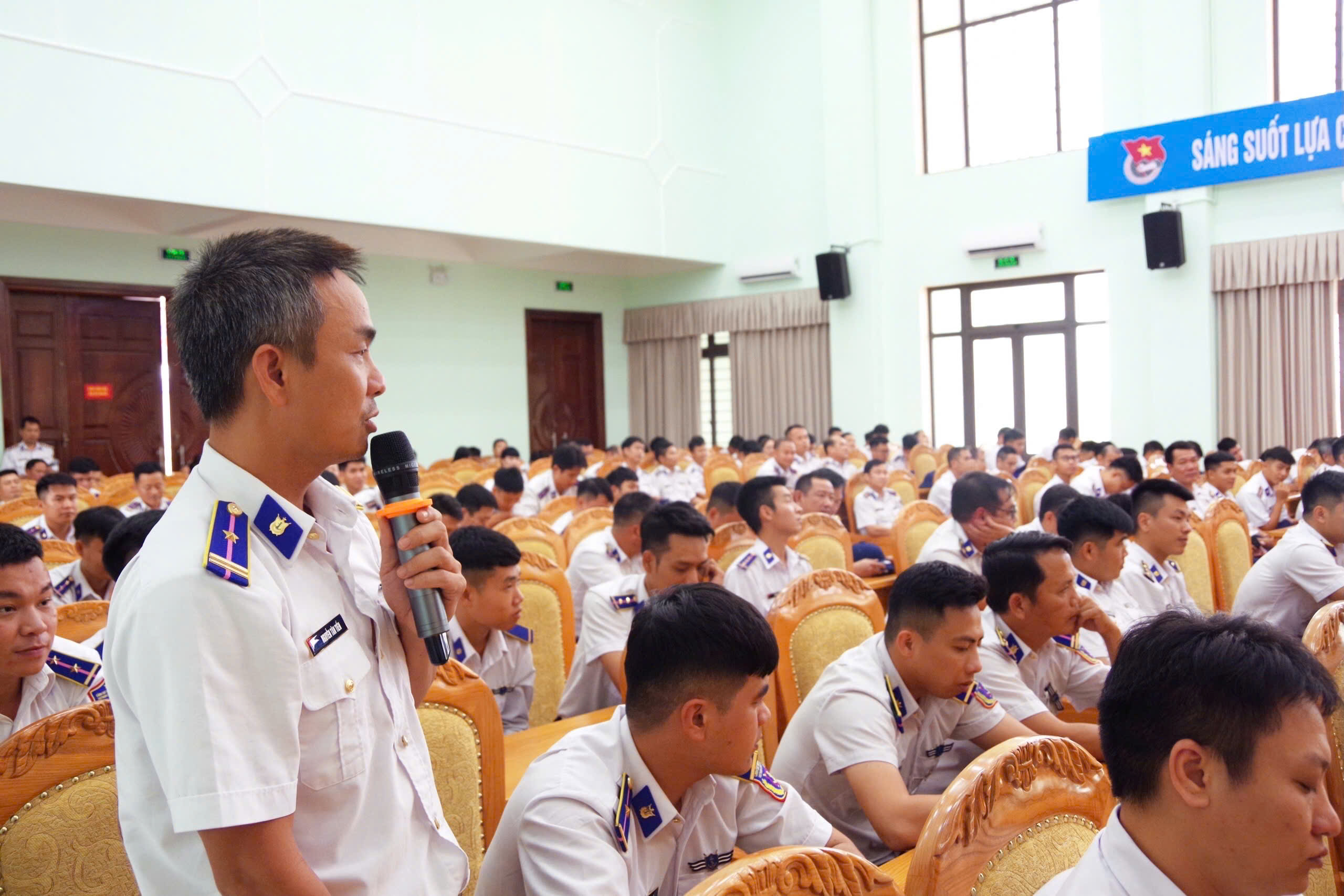 Cán bộ, chiến sĩ Hải đoàn 11 tham gia ý kiến phát biểu đối thoại với Thủ trưởng Bộ Tư lệnh Vùng