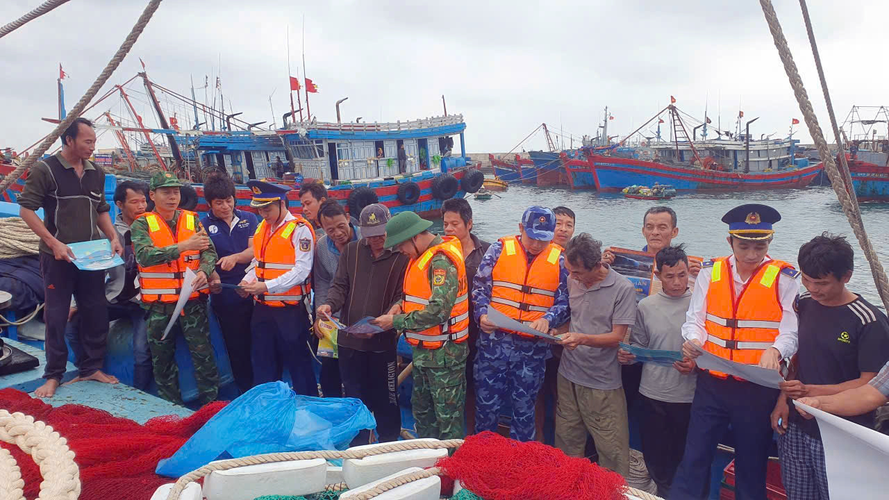Lực lượng chức năng tuyên truyền IUU cho ngư dân tại âu cảng Bạch Long Vĩ.