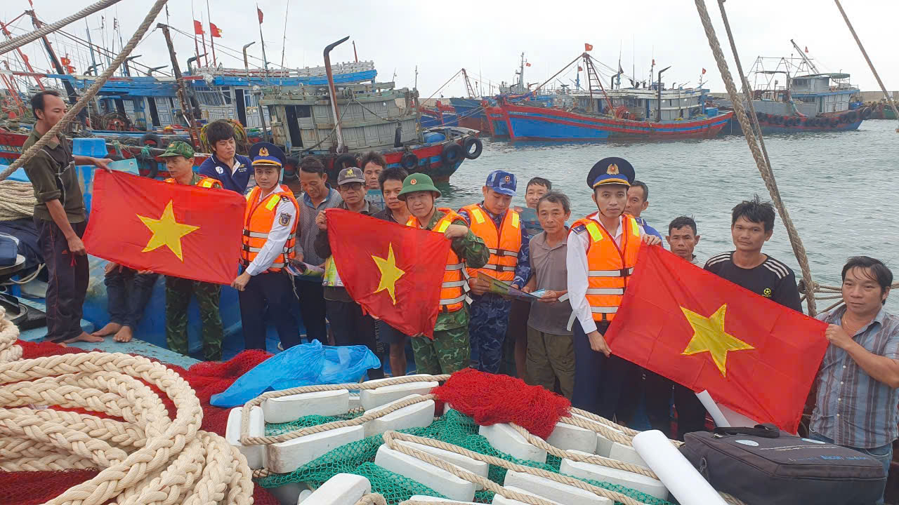 Đồng thời, tổ công tác thông tin một số quy định về hoạt động nghề cá trên biển, trong đó, nhấn mạnh những chế tài xử lý của Việt Nam và các nước đối với hành vi vi phạm; tuyên truyền, vận động các chủ tàu cá khai thác xa bờ, thuyền trưởng thực hiện nghiêm túc việc ghi nhật ký khai thác hải sản, báo cáo khai thác, lắp đặt, vận hành thiết bị giám sát tàu cá bảo đảm theo đúng quy định và ký cam kết không khai thác hải sản trái phép trên vùng biển nước ngoài và vi phạm khai thác IUU. Tổ công tác cũng đã kết hợp tặng 100 lá cờ Tổ quốc cho bà con ngư dân tại đây.