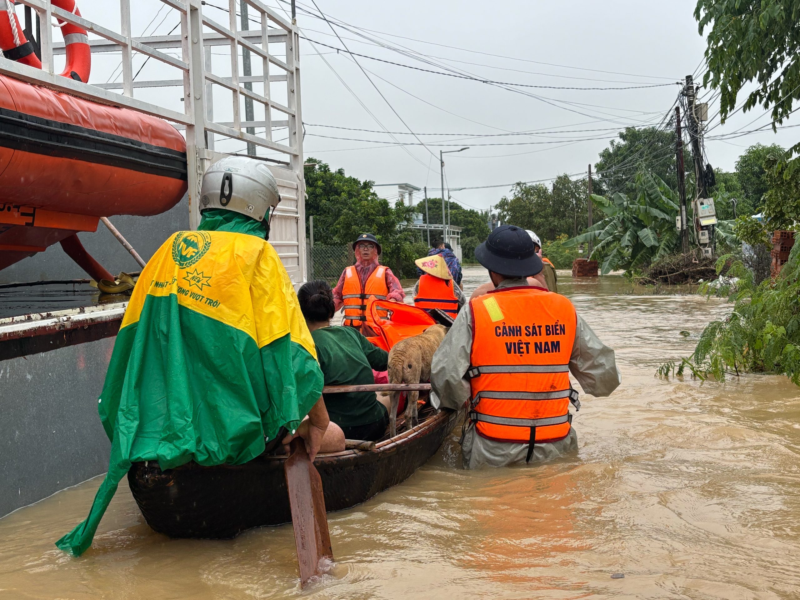 Bộ Tư lệnh Vùng Cảnh sát biển 3 huy động hơn 100 cán bộ, chiến sĩ hỗ trợ nhân dân Khánh Hòa khắc phục ngập lụt