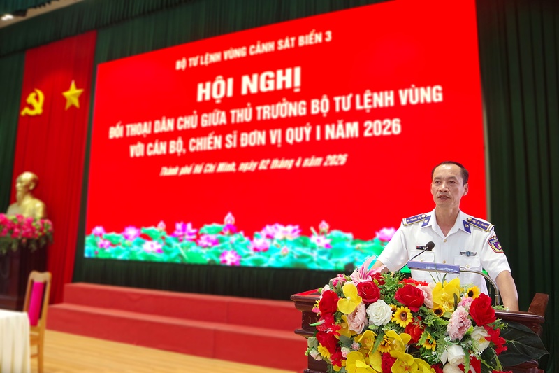 Tạp chí Biển Việt Nam - Chiều ngày 02/4, Bộ Tư lệnh Vùng Cảnh sát biển 3 tổ chức Hội nghị đối thoại dân chủ quý I năm 2026 giữa Thủ trưởng Bộ Tư lệnh Vùng với cán bộ, chiến sĩ trong đơn vị. Đồng chí Đại tá Lê Văn Tú, Bí thư Đảng ủy, Chính ủy Bộ Tư lệnh Vùng chủ trì hội nghị.
