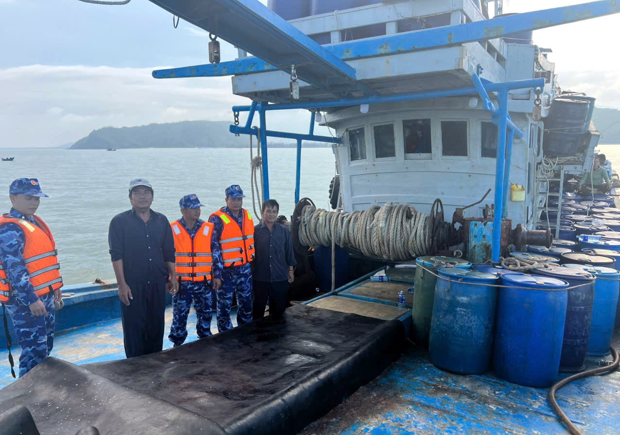 Tổ công tác đã tiến hành lập biên bản ban đầu.Phối hợp với các cơ quan chức năng dẫn giải phương tiện vi phạm về đất liền để tiến hành các biện pháp điều tra, xác minh, xử lý theo quy định của pháp luật.