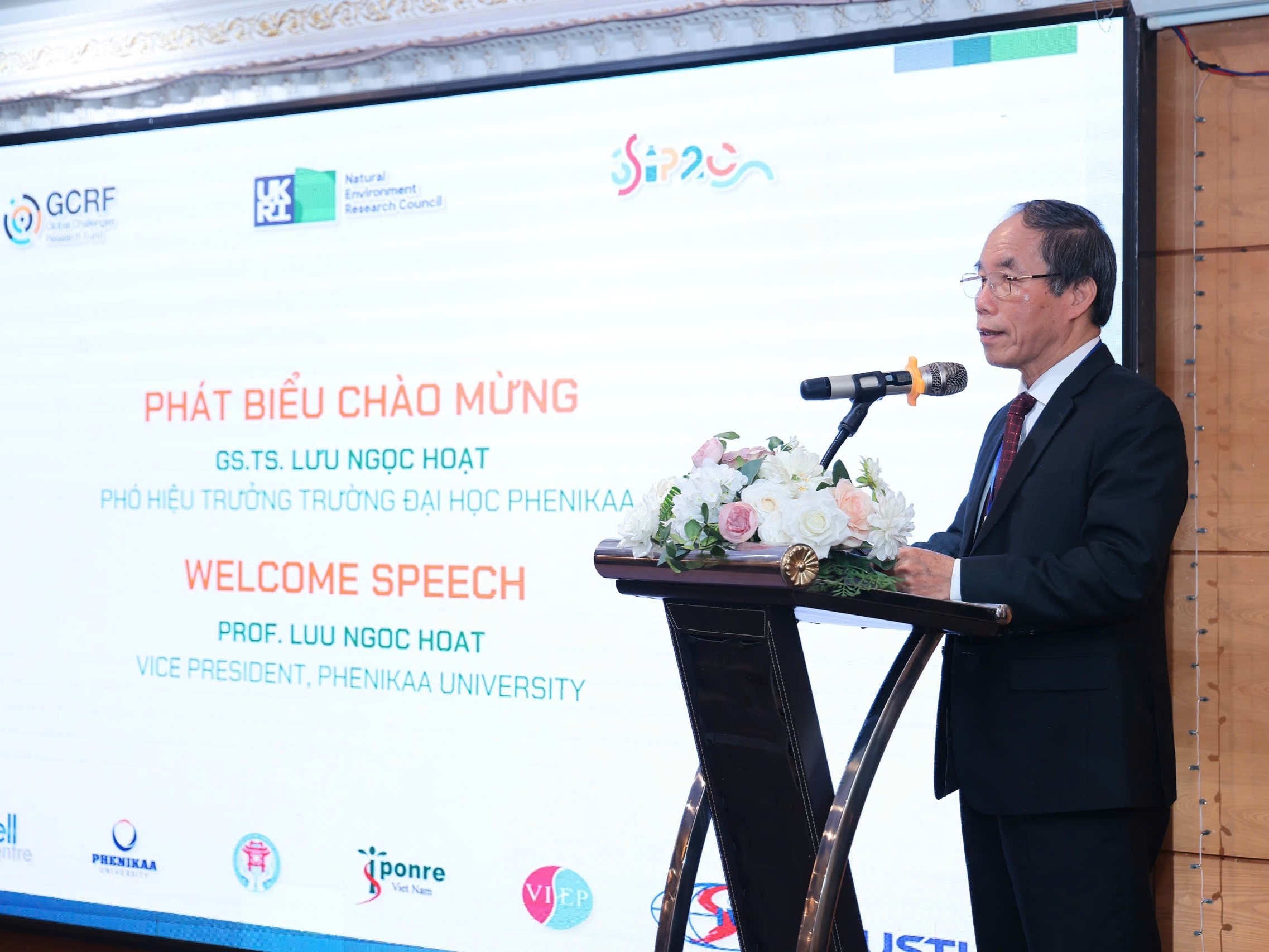 Phát biểu tại hội thảo, GS.TS Lưu Ngọc Hoạt – Phó Hiệu trưởng Trường Đại học Phenikaa cho biết, với đường bờ biển dài 3.260 km trải qua 28 tỉnh, thành, vùng ven biển Việt Nam đóng vai trò sống còn trong phát triển kinh tế và sinh kế cộng đồng. Tuy nhiên, ô nhiễm nhựa đã và đang đe dọa nghiêm trọng hệ sinh thái, sức khỏe cộng đồng và tính bền vững của nền kinh tế quốc gia. Hàng năm, khoảng 730.000 tấn rác thải nhựa xâm nhập vào môi trường biển, đặt ra nhu cầu cấp thiết về hành động phối hợp giữa các bên liên quan. Ảnh: Hoàng Toàn