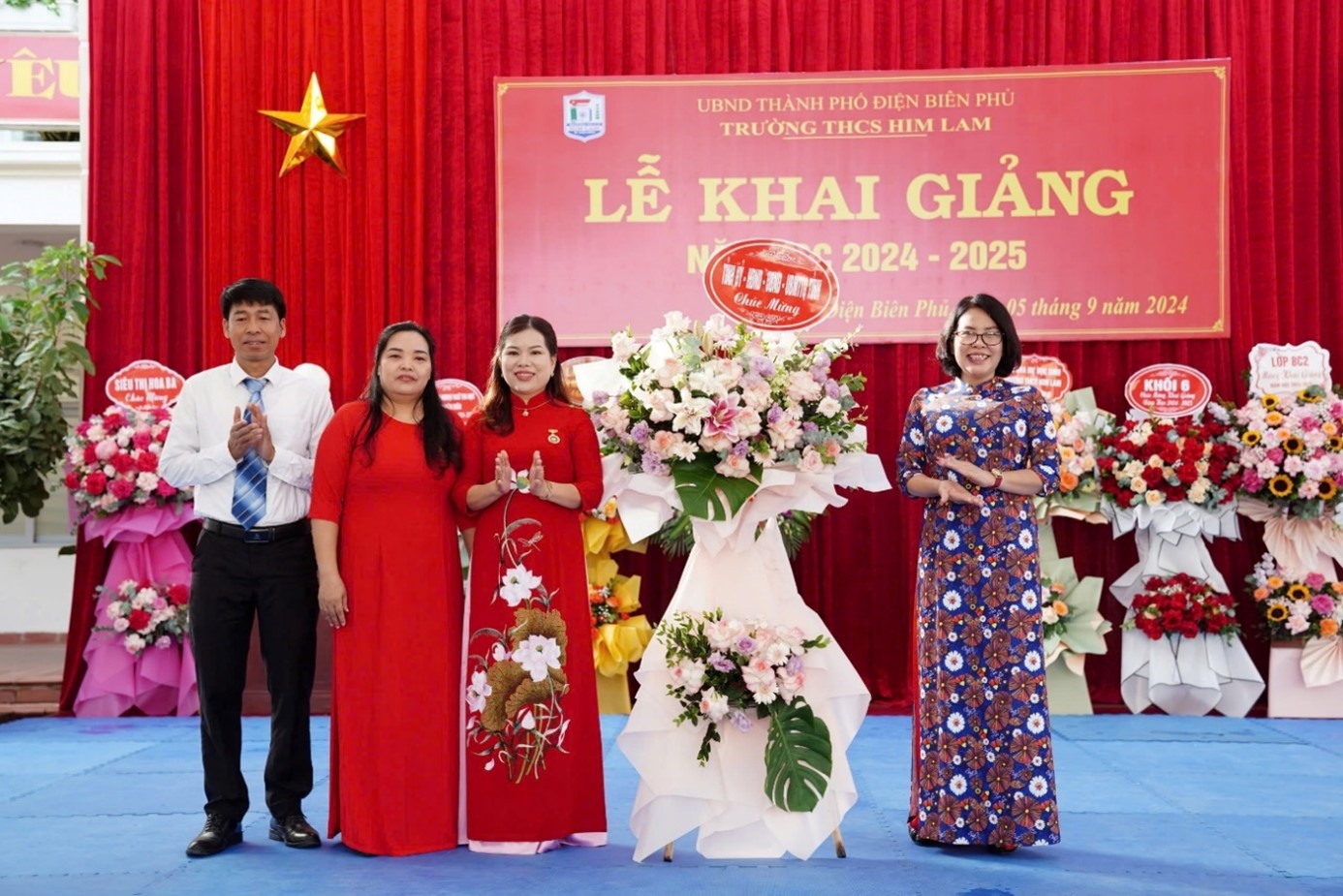 Đồng chí Lò Thị Minh Phượng – uỷ viên Ban Thường vụ Tỉnh uỷ, Trưởng Ban Tuyên giáo Tỉnh uỷ đến dự lễ khai giảng, thực hiện nghi thức gắn Huân chương Lao động hạng Nhì lên cờ truyền thống Trường THCS Him Lam.  Cùng đến dự buổi lễ khai giảng có Đồng chí Đặng Việt Hùng – uỷ viên BTV Thành uỷ, Trưởng ban Tuyên giáo, Giám đốc trung tâm Bồi dưỡng chính trị thành phố; Đồng chí Lê Thị Hồng – uỷ viên BTV Thành uỷ, Trưởng Phòng GD&ĐT thành phố; đồng chí Mai Hương – Phó Trưởng phòng Tổ chức cán bộ Sở GD và ĐT đến dự lễ khai giảng và chúc mừng thầy, trò Trường THCS Him Lam.