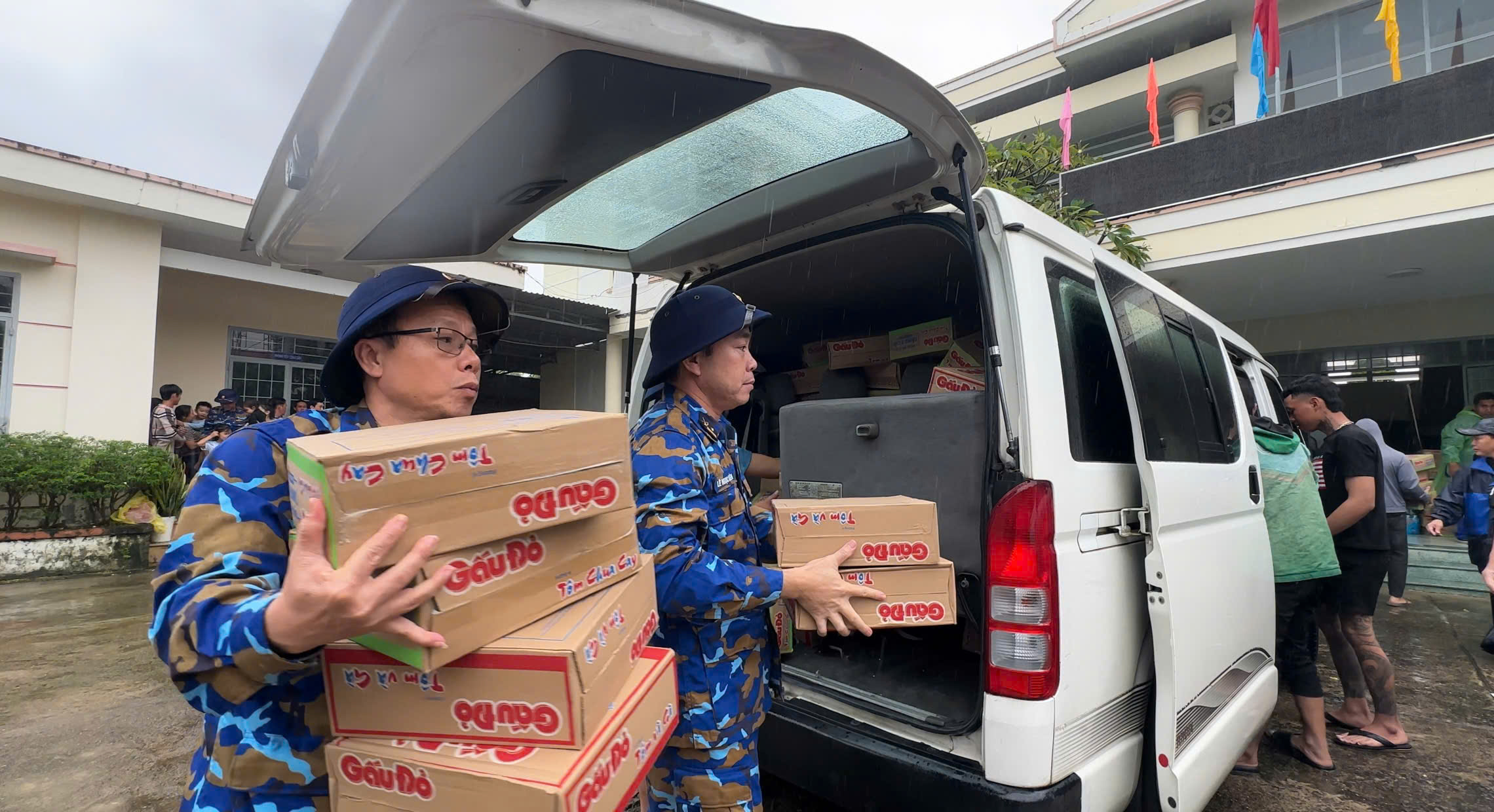 Cùng với đó, lực lượng cứu trợ đã sử dụng xuồng máy đi cấp phát lương thực, thực phẩm thiết yếu như: mì tôm, lương khô, nước uống cho hơn 100 hộ dân.