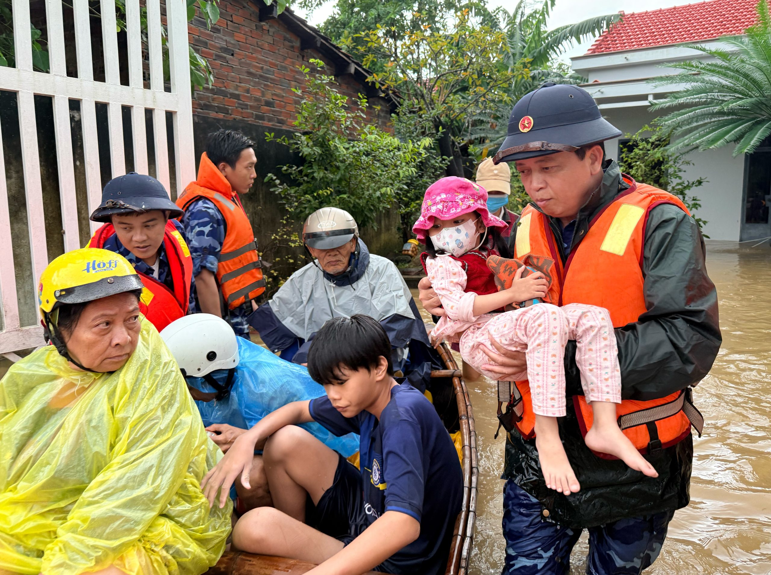 Theo UBND tỉnh Khánh Hòa, những ngày qua, mưa lũ trên địa bàn tỉnh Khánh Hòa diễn biến phức tạp, nhiều khu vực bị ngập sâu, ảnh hưởng lớn đến đời sống và tài sản của nhân dân. Lực lượng từ các đơn vị Bộ đội, Biên phòng, Dân quân tự vệ, Công an tỉnh liên tục ứng trực, tổ chức di dời cứu dân vùng bị ngập.