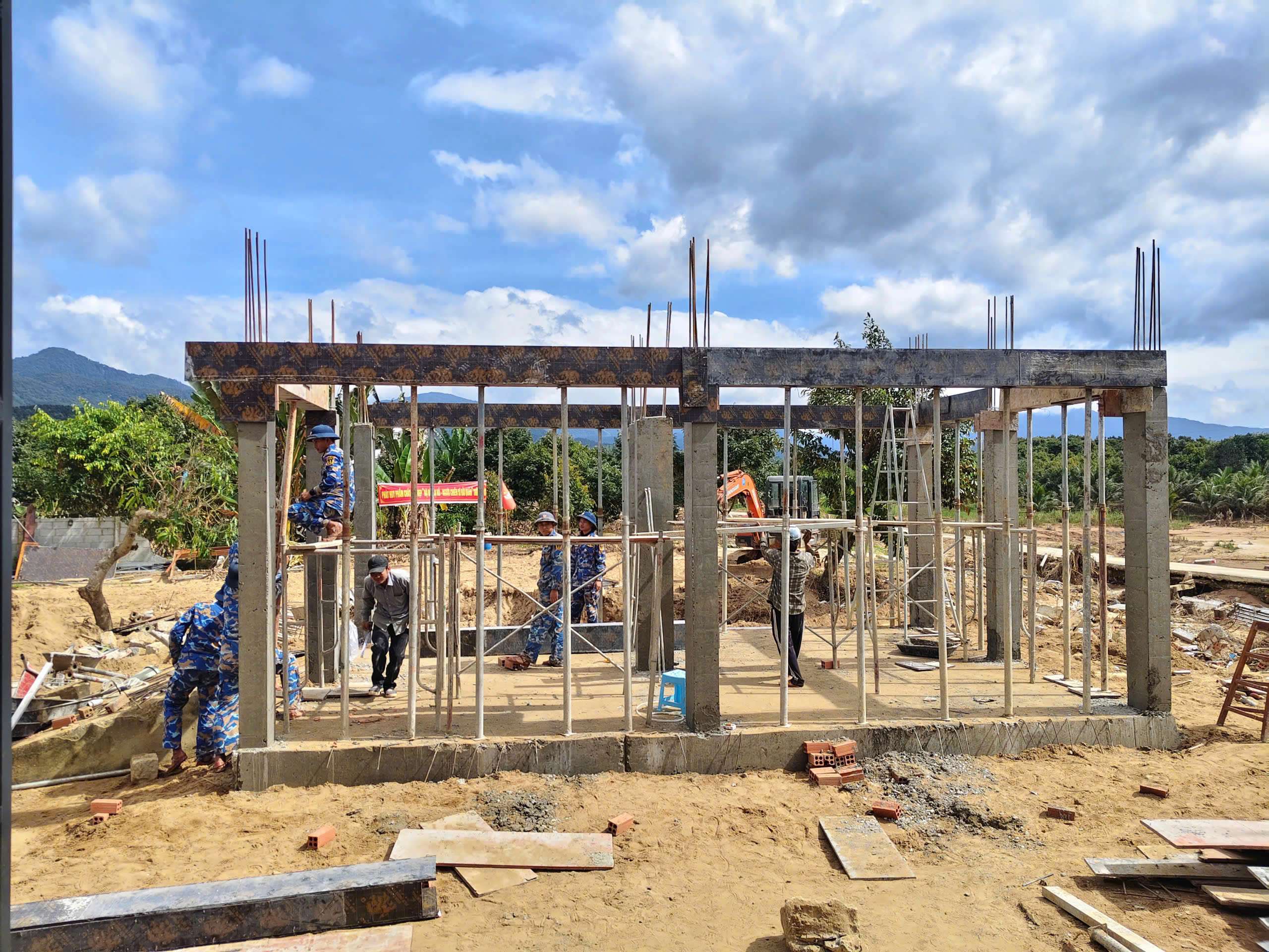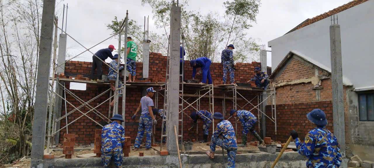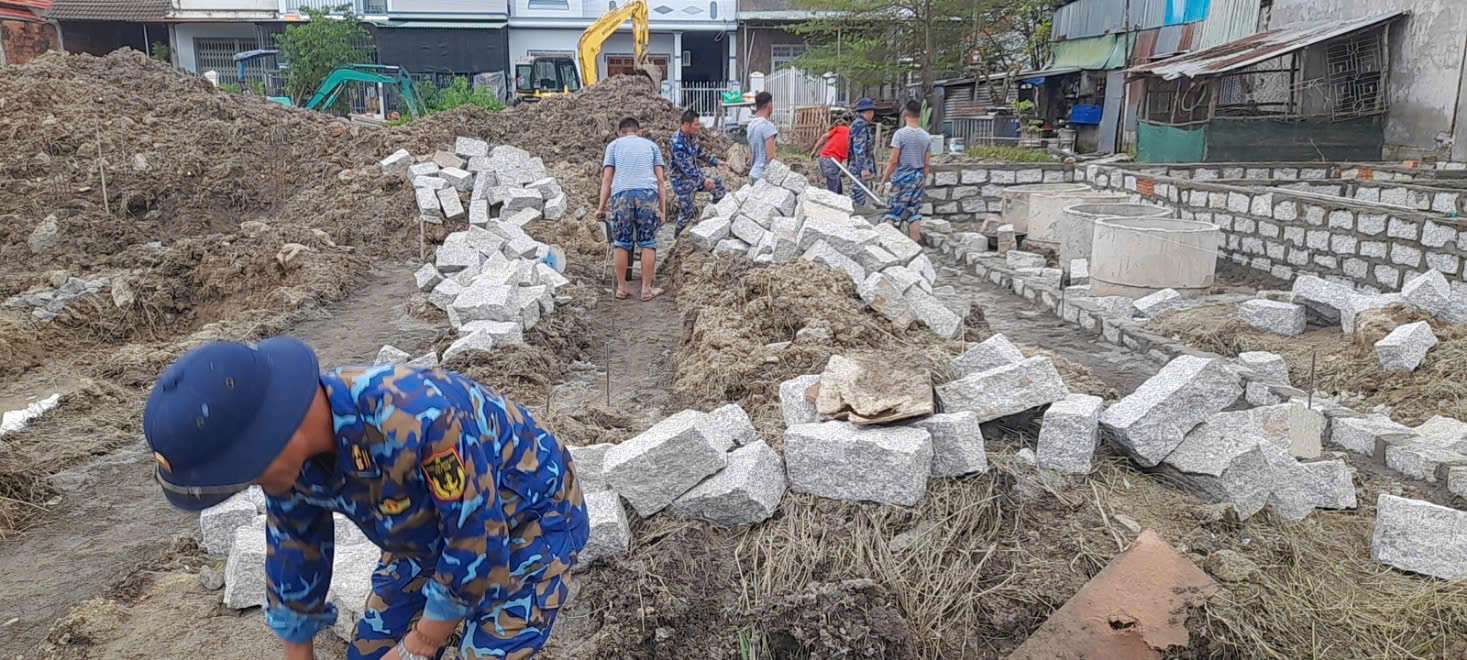 Những ngày không ra biển, người chiến sĩ Hải quân quen với sóng gió nay lại lấm lem bùn đất trên các công trường nhỏ giữa vùng thôn quê. Dưới cái nắng gắt sau mưa, cán bộ, chiến sĩ làm việc liên tục từ sáng sớm đến chiều muộn, quyết tâm hoàn thành nhiệm vụ đúng và vượt tiến độ.