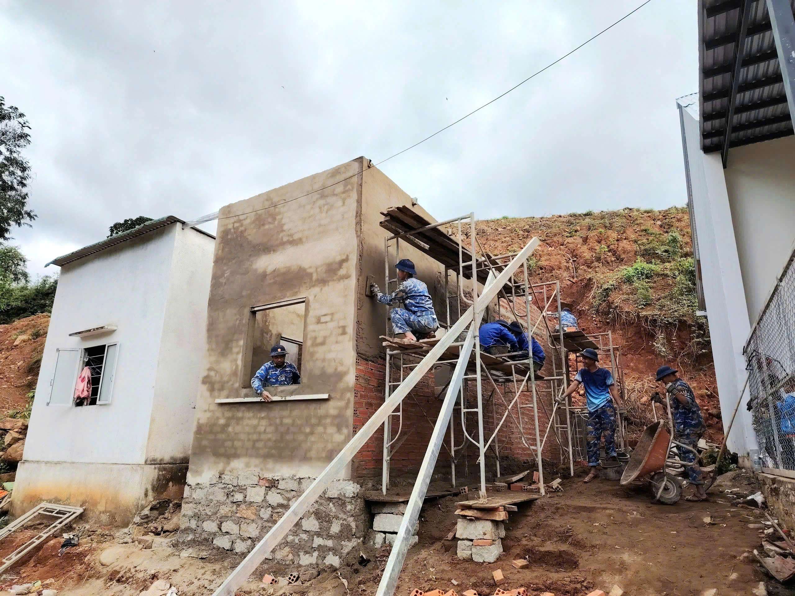 Trực tiếp tham gia thi công tại cơ sở, Trung úy Nguyễn Quốc Dũng, Trung đội trưởng Trung đội 3, Đại đội 3, Tiểu đoàn 864, Lữ đoàn 101, chia sẻ: “Đối với chúng tôi, mỗi căn nhà không chỉ là một công trình xây dựng, mà là thành quả của trách nhiệm và tình cảm. Anh em trong đơn vị luôn động viên nhau làm hết sức mình, tranh thủ từng ngày, từng giờ để sớm bàn giao nhà cho bà con, giúp họ ổn định cuộc sống trước Tết.”