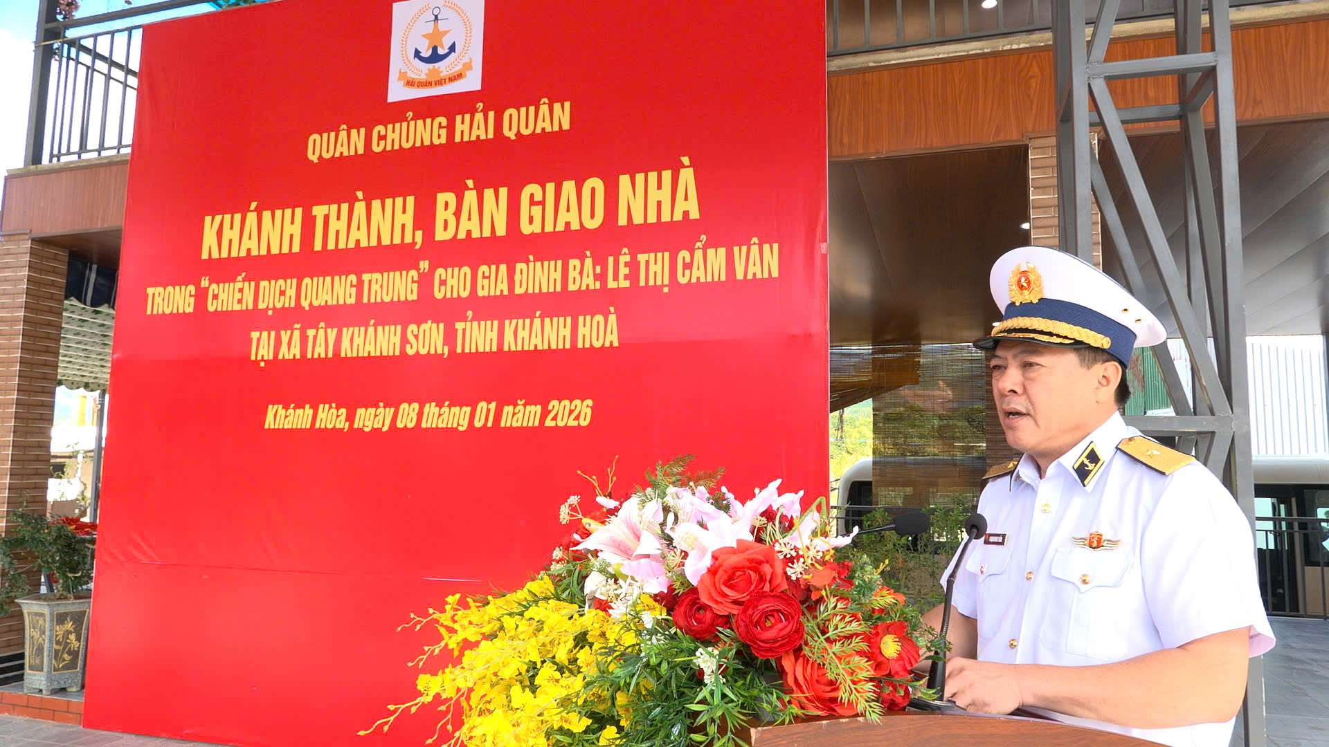 Ngôi nhà được bàn giao cho bà Lê Thị Cẩm Vân (26 tuổi), trú tại thôn Du Oai, xã Tây Khánh Sơn, tỉnh Khánh Hòa. Bà Vân có hoàn cảnh đặc biệt khó khăn, hiện sống một mình nuôi 2 cháu nhỏ; ngôi nhà cũ bị hư hỏng nặng do mưa lũ gây ra.
