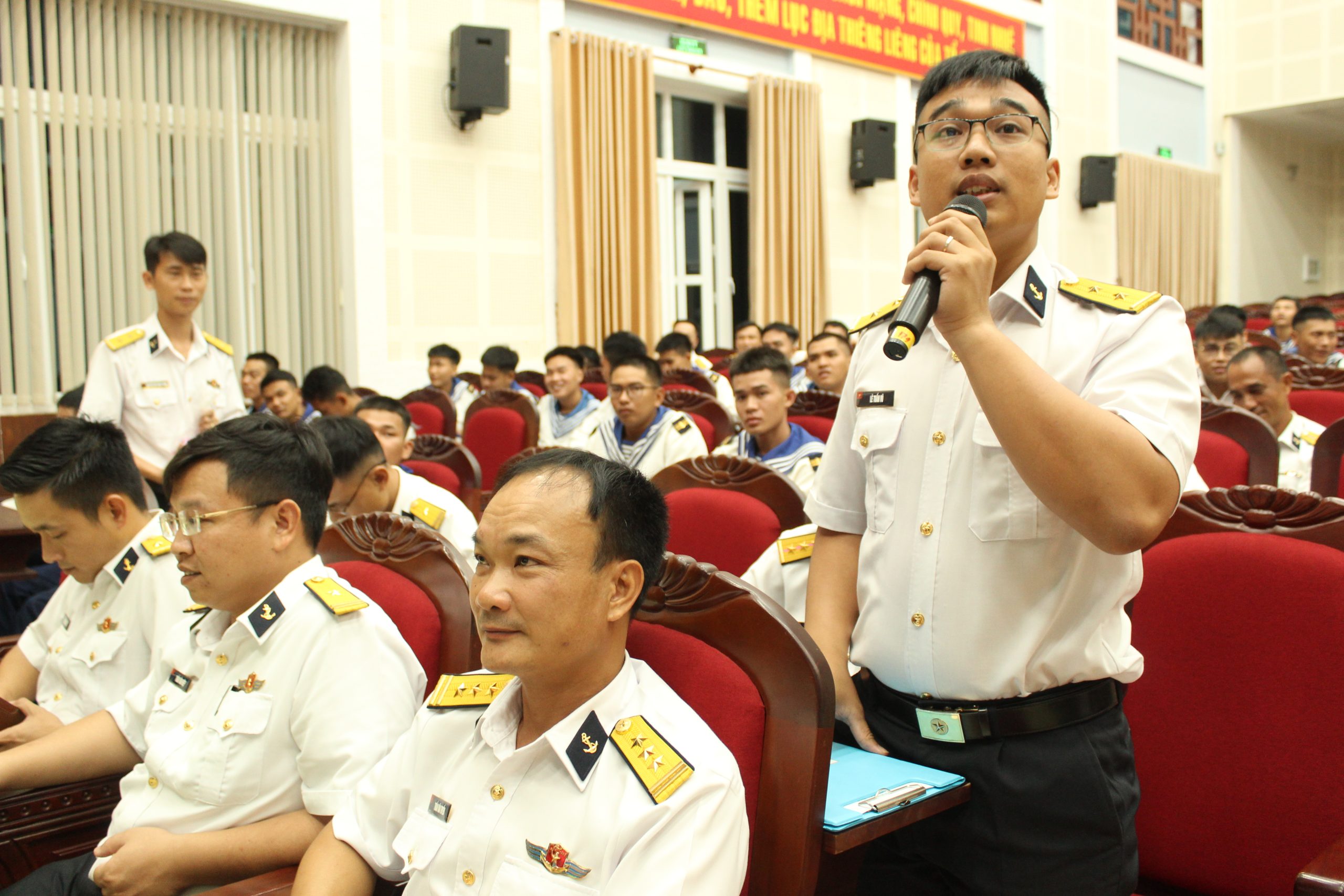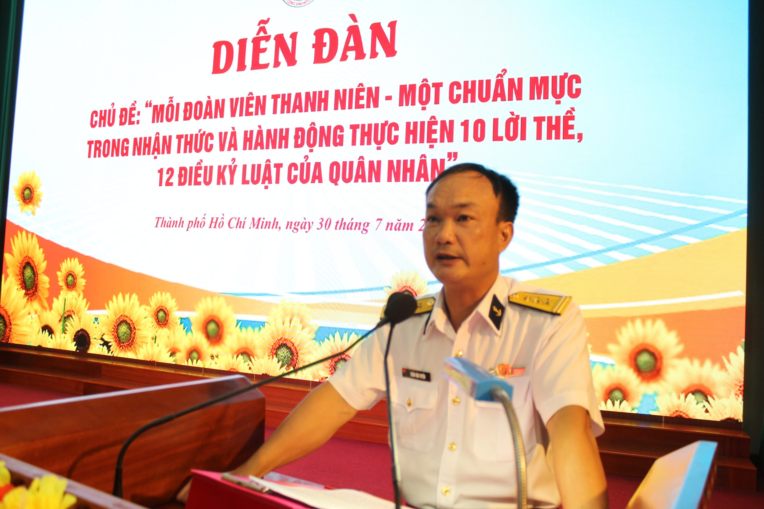 Tạp chí Biển Việt Nam - Tối 30/7, tại phường Phước Thắng, thành phố Hồ Chí Minh, Lữ đoàn 171, Vùng 2 Hải quân tổ chức Diễn đàn thanh niên với chủ đề “Mỗi đoàn viên thanh niên – Một chuẩn mực trong nhận thức và hành động thực hiện 10 lời thề, 12 điều kỷ luật của quân nhân”.