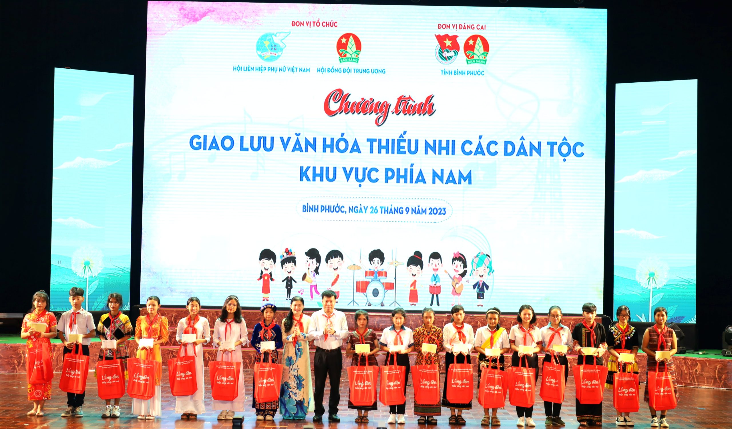 Đồng thời, để cổ vũ, động viên các em thiếu nhi dân tộc thiểu số có hoàn cảnh khó khăn đã vươn lên vượt khó học tốt, Trung ương Hội LHPN Việt Nam và Hội đồng Đội TW cũng dành tặng 100 suất quà, học bổng mỗi suất gồm 1 triệu đồng tiền mặt và phần dụng cụ học tập cho 100 thiếu nhi dân tộc thiểu số của 7 tỉnh khu vực phía Nam.