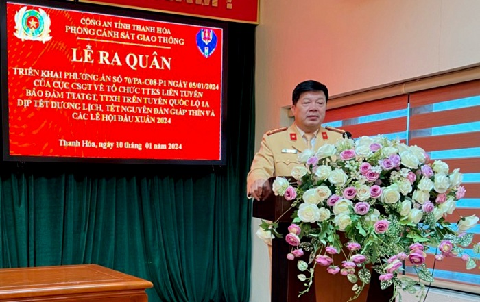 - Công an tỉnh Thanh Hóa, Phòng CSGT đã tổ chức Lễ ra quân triển khai phương án số 70/PA–08–P1 ngày 5 tháng 1 năm 2024 của Cục CSGT về tổ chức TTKS liên tuyến bảo đảm TTATGT, TTXH trên tuyến Quốc lộ 1A dịp Tết Dương lịch, Tết Nguyên đán Giáp Thìn và các lễ hội đầu xuân 2024.