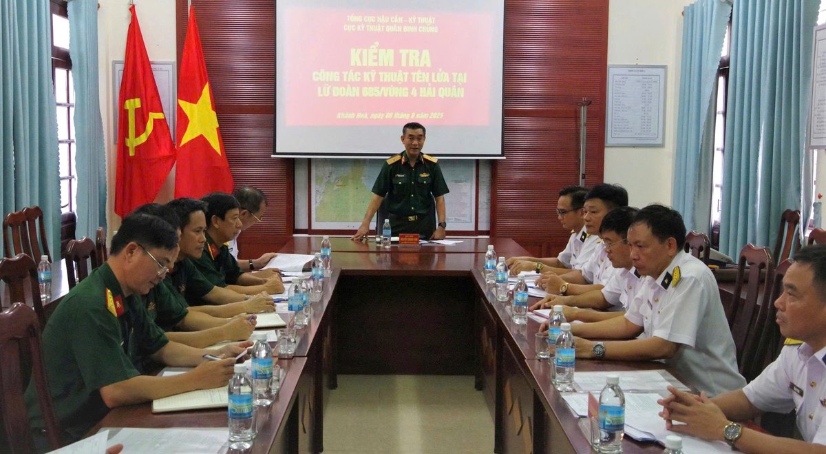Tạp chí Biển Việt Nam - Chiều ngày 06/8, tại phường Bắc Cam Ranh, tỉnh Khánh Hoà, Đoàn công tác Cục Kỹ thuật quân, binh chủng/Tổng cục Hậu cần-Kỹ thuật Hải quân đến kiểm tra công tác kỹ thuật tại Lữ đoàn 685, Vùng 4 Hải quân. Thiếu tướng Nguyễn Quang Anh, Cục trưởng, Cục Kỹ thuật quân, binh chủng làm trưởng đoàn.