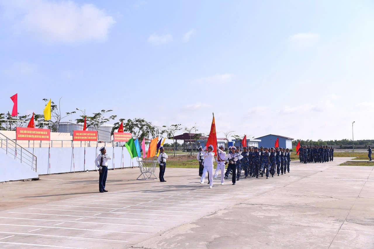 Bước chân lên cầu cảng đơn vị vào buổi chiều nắng gắt đặc trưng của Đất Mũi, tôi cảm nhận rõ vị mặn của muối biển quyện trong khí thế hừng hực của ngày đầu ra quân huấn luyện. Năm Căn đón tôi không chỉ bằng tiếng máy tàu rền vang, mà bằng thanh âm hùng tráng của khối duyệt đội ngũ rầm rập đi qua lễ đài và những màn đồng diễn võ thuật mạnh mẽ, dứt khoát của những người lính biển. Dưới lá Cờ đơn vị huấn luyện giỏi năm 2025 của Bộ Quốc phòng tung bay kiêu hãnh, tôi chợt nhận ra: ở đây, “tọa độ” không còn là những con số lý thuyết, mà là vị trí đứng mũi chịu sào của mỗi quân nhân trước nhiệm vụ bảo vệ chủ quyền biển, đảo phía Tây Nam Tổ quốc.