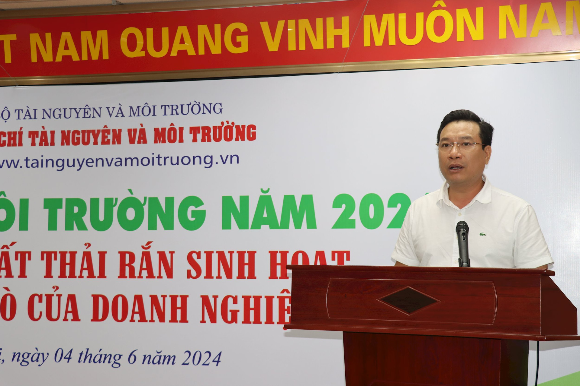 Ông Hồ Kiên Trung, Phó Cục trưởng Cục Kiểm soát ô nhiễm môi trường phát biểu tại diễn đàn