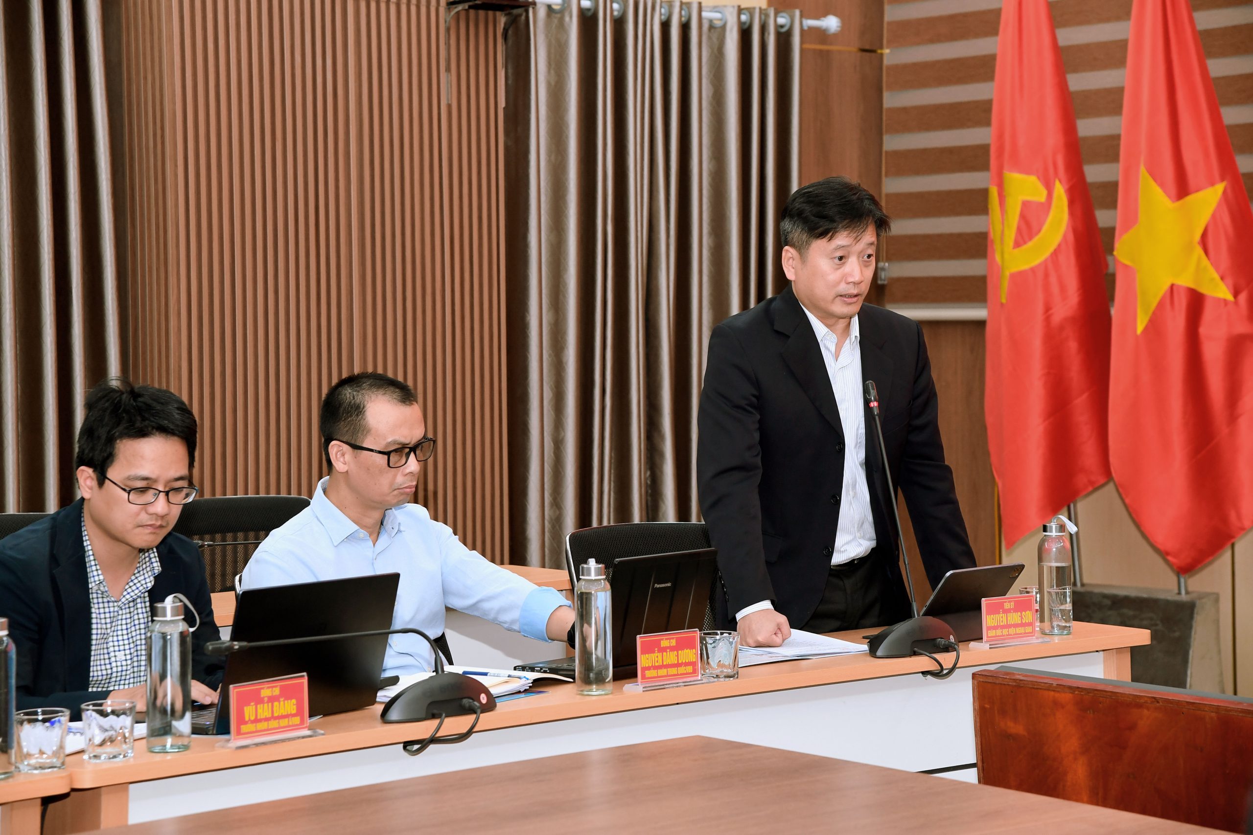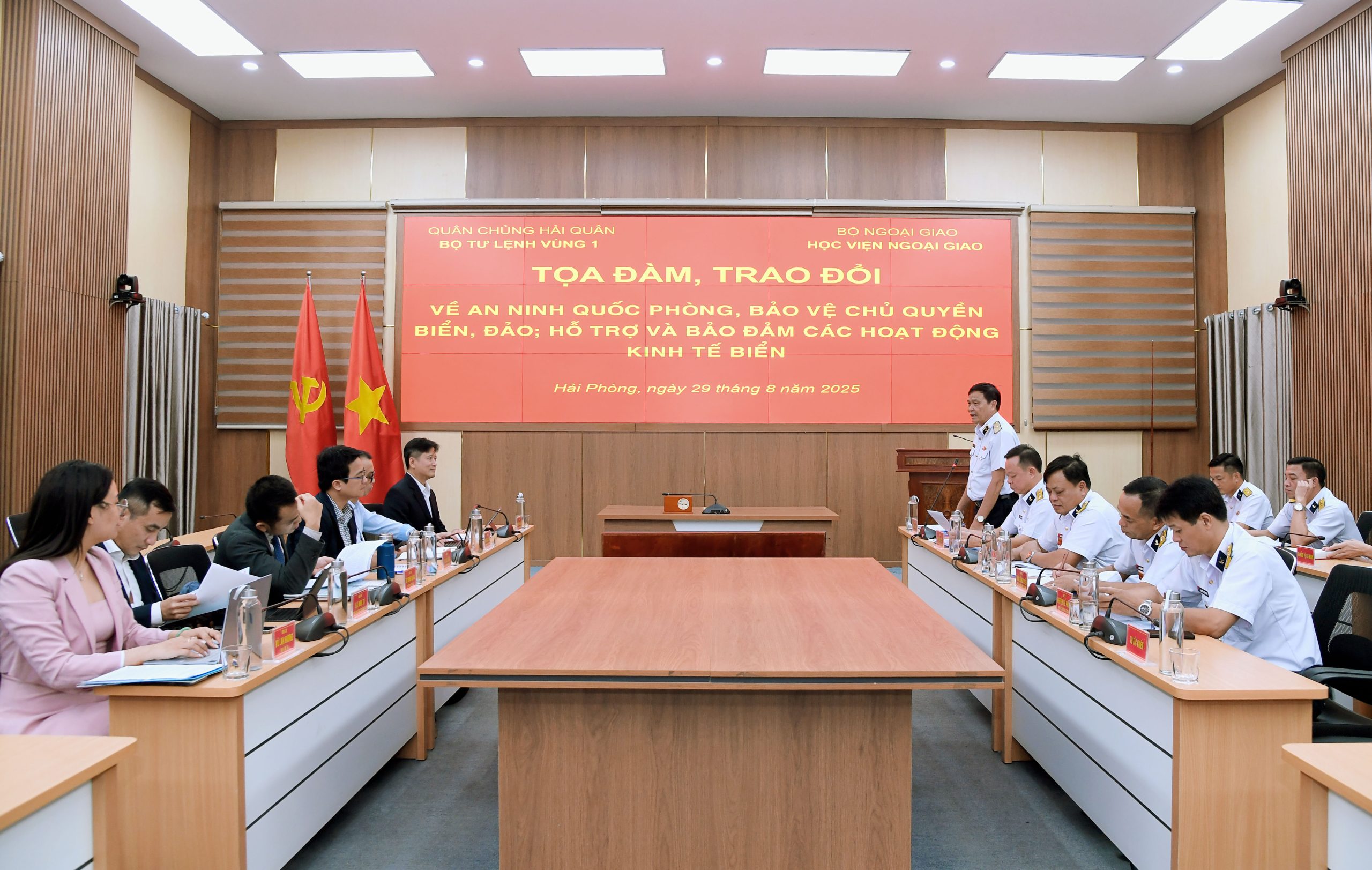 Thay mặt đoàn công tác Học viện Ngoại giao, TS. Nguyễn Hùng Sơn cảm ơn sự đón tiếp chu đáo, trọng thị của Bộ Tư lệnh Vùng 1 Hải quân đã dành cho đoàn. Thông qua nội dung khảo sát kết hợp toạ đàm, trao đổi ý kiến mang tính thực tiễn đã giúp đoàn công tác nắm được những nội dung cơ bản về đặc điểm, tình hình, quá trình xây dựng, chiến đấu, phát triển và nhiệm vụ chính trị trọng tâm của Vùng trong tình hình mới.