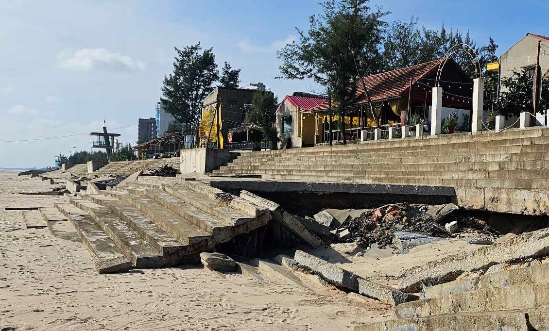 Về phương án xử lý, đại diện Viện Thủy công, đề xuất định hướng bảo vệ tuyến bờ như sau: Ưu tiên sửa chữa, gia cố khẩn cấp các đoạn kè hư hỏng nghiêm trọng bằng giải pháp kè mái nghiêng sử dụng đá hộc hoặc cấu kiện bê tông đúc sẵn. Để xử lý triệt để lâu dài cần xây dựng công trình đê ngầm giảm sóng xa bờ để giảm năng lượng sóng trước khi vào đến bờ, tạo điều kiện hình thành, ổn định lại bãi cát tự nhiên, từ đó tăng hiệu quả bảo vệ tuyến kè bờ, duy trì giá trị cảnh quan – du lịch bền vững.