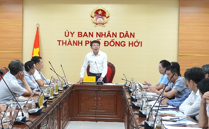 Chủ tịch UBND TP.Đồng Hới Hoàng Ngọc Đan phát biểu chỉ đạo tại hội thảo.