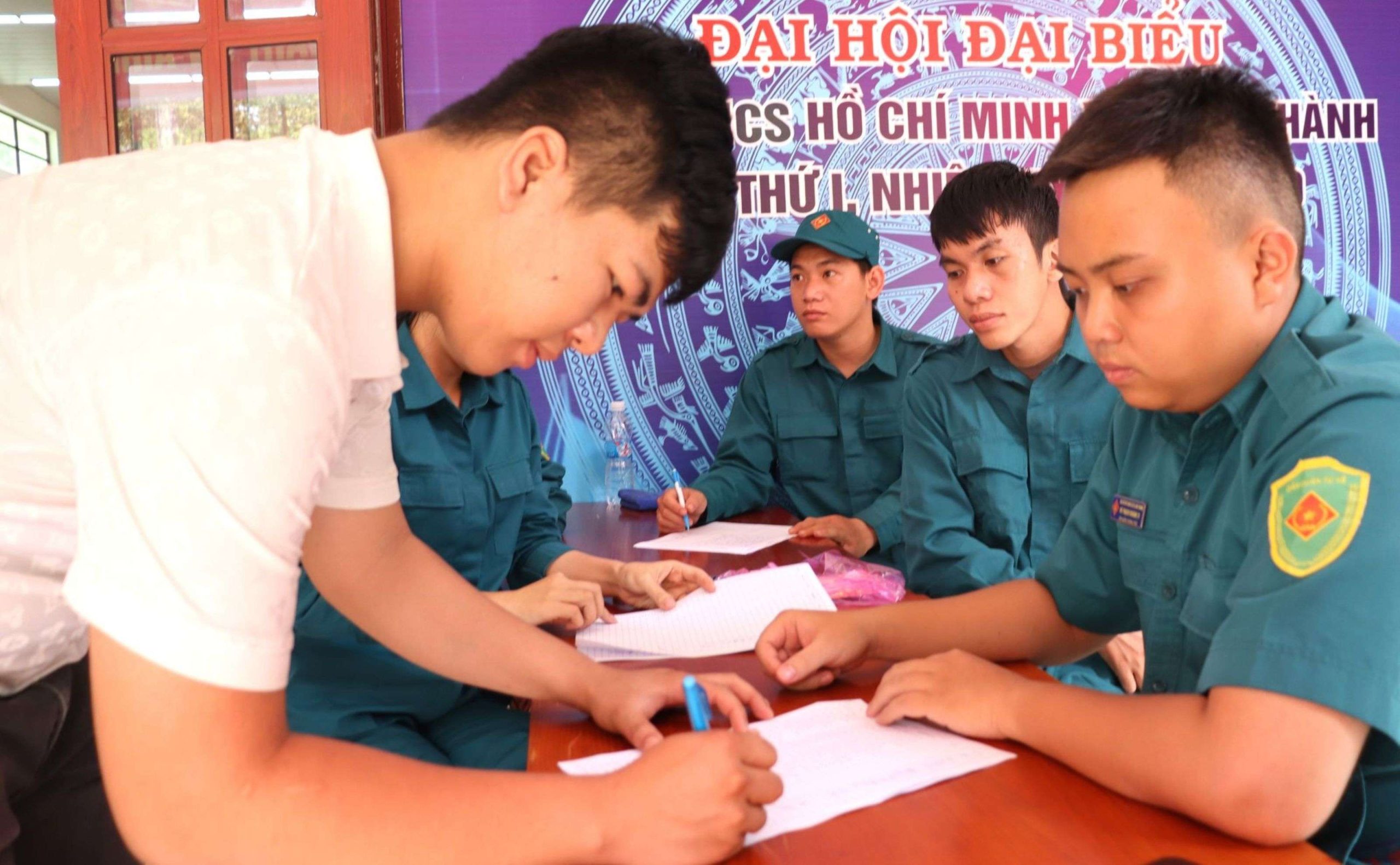 Thanh niên Long Thành tình nguyện viết đơn nhập ngũ năm 2026. Ảnh: Nguyệt Hà