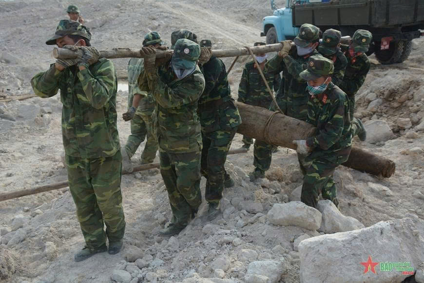 Bộ đội Công binh tìm kiếm bom mìn còn sót lại sau chiến tranh và vận chuyển về nơi hủy nổ