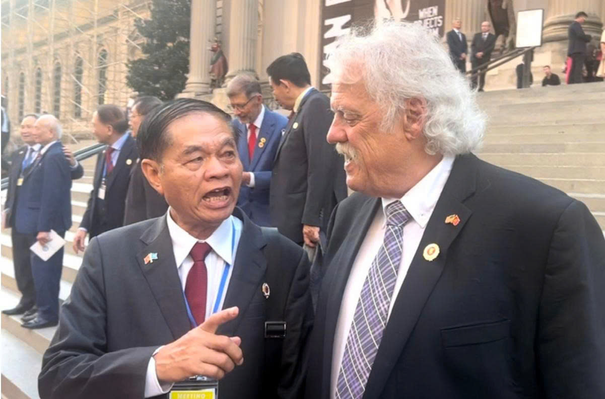 Thiếu tướng Hoàng Kiền (tác giả) và ông John Tezano – Phó chủ tịch Quỹ cựu chiến binh Mỹ (VVAF) trong buổi gặp mặt các cựu chiến binh Việt Nam và Hoa Kỳ tại New York.