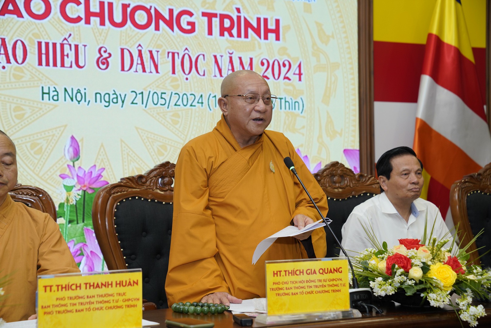 Hòa thượng Thích Gia Quang phát biểu tại buổi Họp báo giới thiệu về “Chương trình Vu lan – Đạo hiếu & Dân tộc năm 2024”. Ảnh: Hoàng Toàn