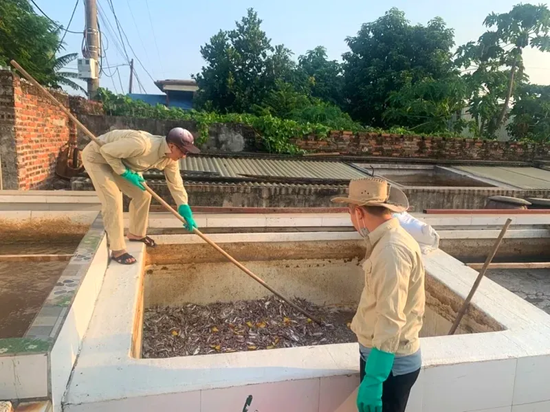 Ông Phương cho biết thêm, hiện nay nhiều đơn vị sử dụng nguồn muối nhập từ Nam Định, loại muối có vị chát và độ mặn cao hơn trước. Trước khi phối trộn, công nhân đo độ mặn để điều chỉnh tỷ lệ cá – muối phù hợp. Thông thường, tỷ lệ muối dao động khoảng 18–20%, song không cố định mà được gia giảm theo thực tế nhằm đảm bảo môi trường lên men ổn định.