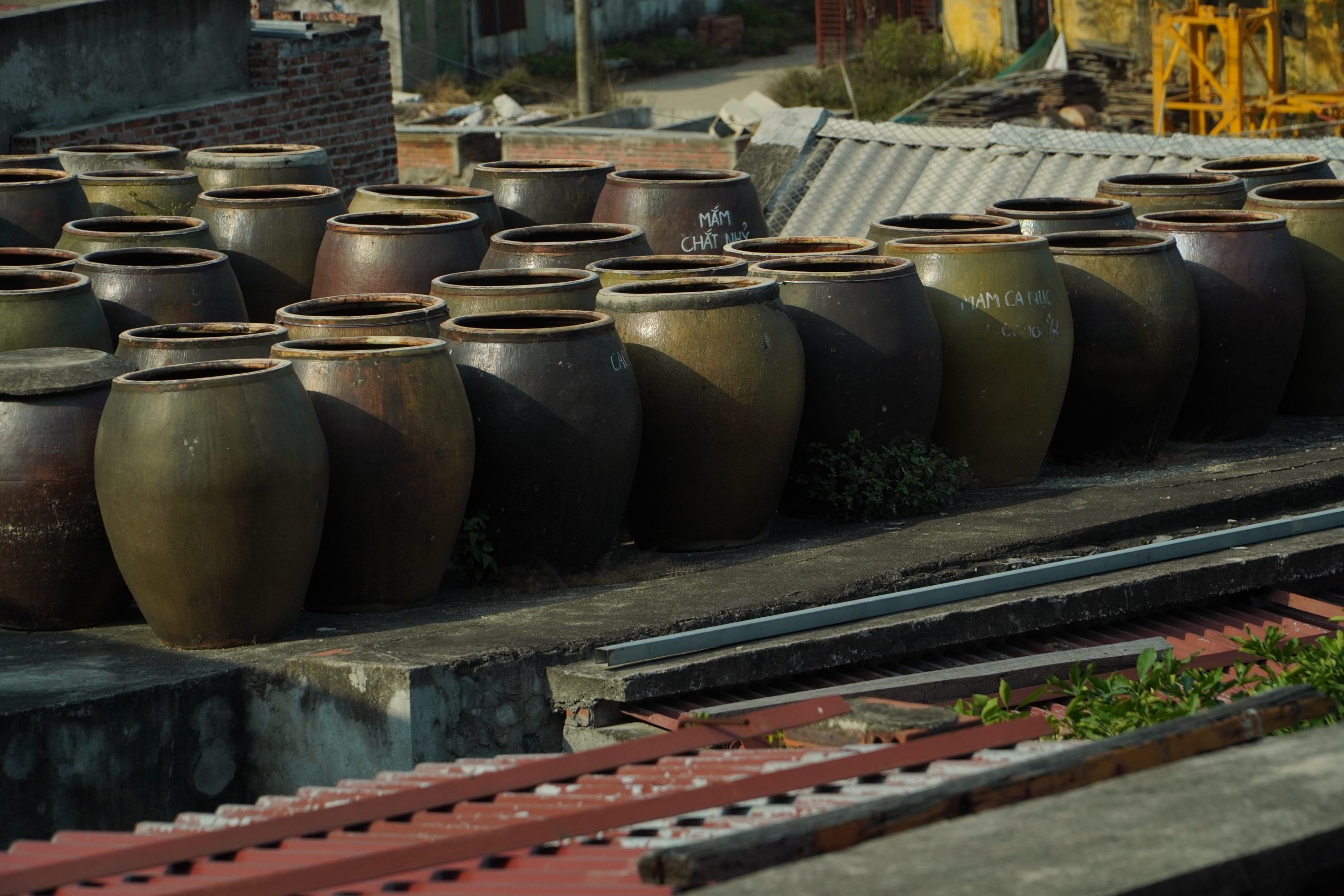 Các thùng chượp được ủ trong thời gian dài, tạo môi trường lên men tự nhiên cho cá và muối.