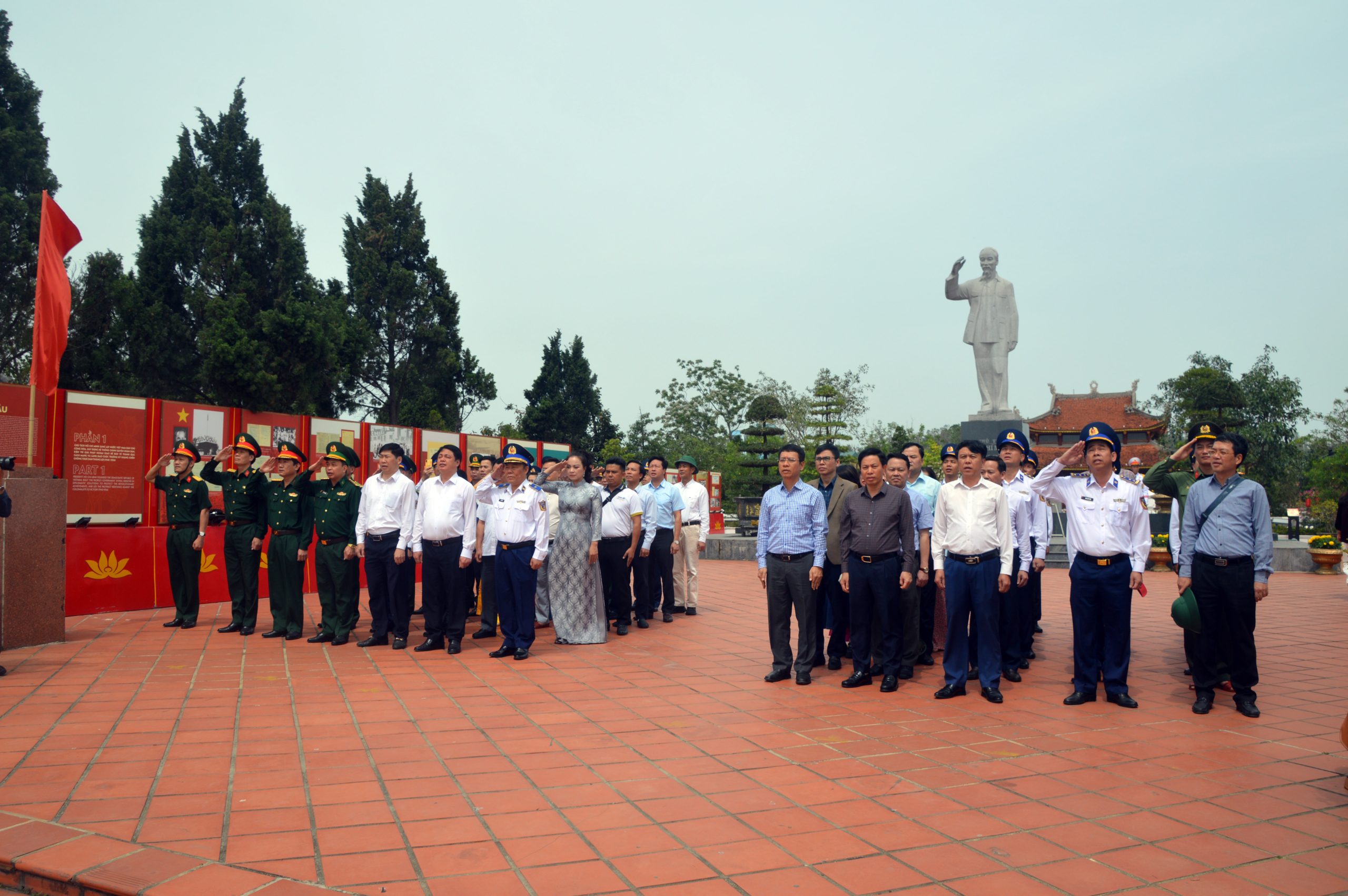 Đoàn công tác làm lễ chào cờ tại Di tích quốc gia đặc biệt Khu lưu niệm Chủ tịch Hồ Chí Minh trên đảo Cô Tô