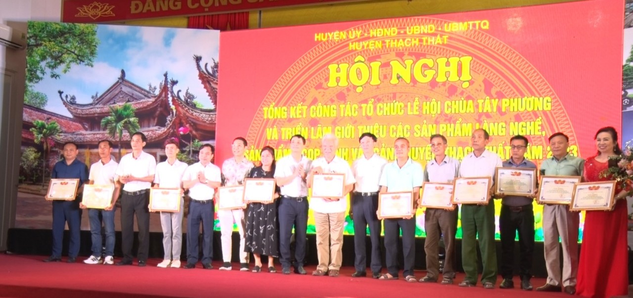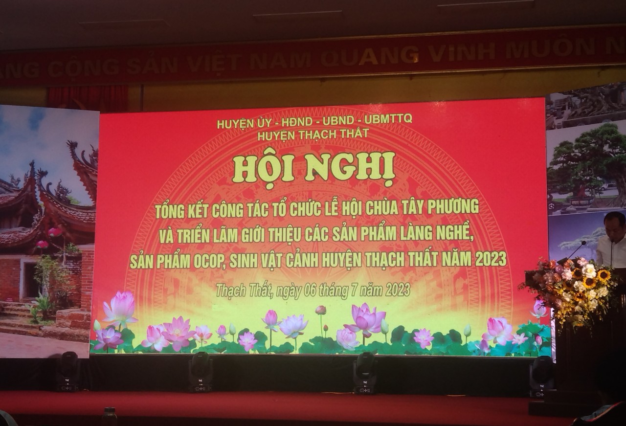 Hội nghị tổng kết, đánh giá, rút kinh nghiệm về công tác tổ chức trưng bày các sản phẩm làng nghề, thủ công mỹ nghệ, sản phẩm OCOP, sinh vật cảnh và Lễ khai hội Chùa Tây phương năm 2023 của UBND huyện Thạch Thất trong không khí vui tươi và thành công tốt đẹp.