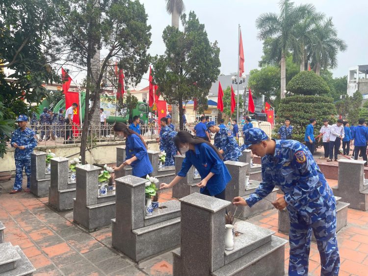 Ngoài ra, lực lượng đoàn viên thanh niên và phụ nữ Hải đoàn 11 đã phối hợp với Đoàn thanh niên phường Đông Hải (TP Hải Phòng) tổ chức dọn vệ sinh, chỉnh trang các phần mộ liệt sĩ và thắp hương tưởng niệm tại Nghĩa trang liệt sĩ phường Đông Hải.