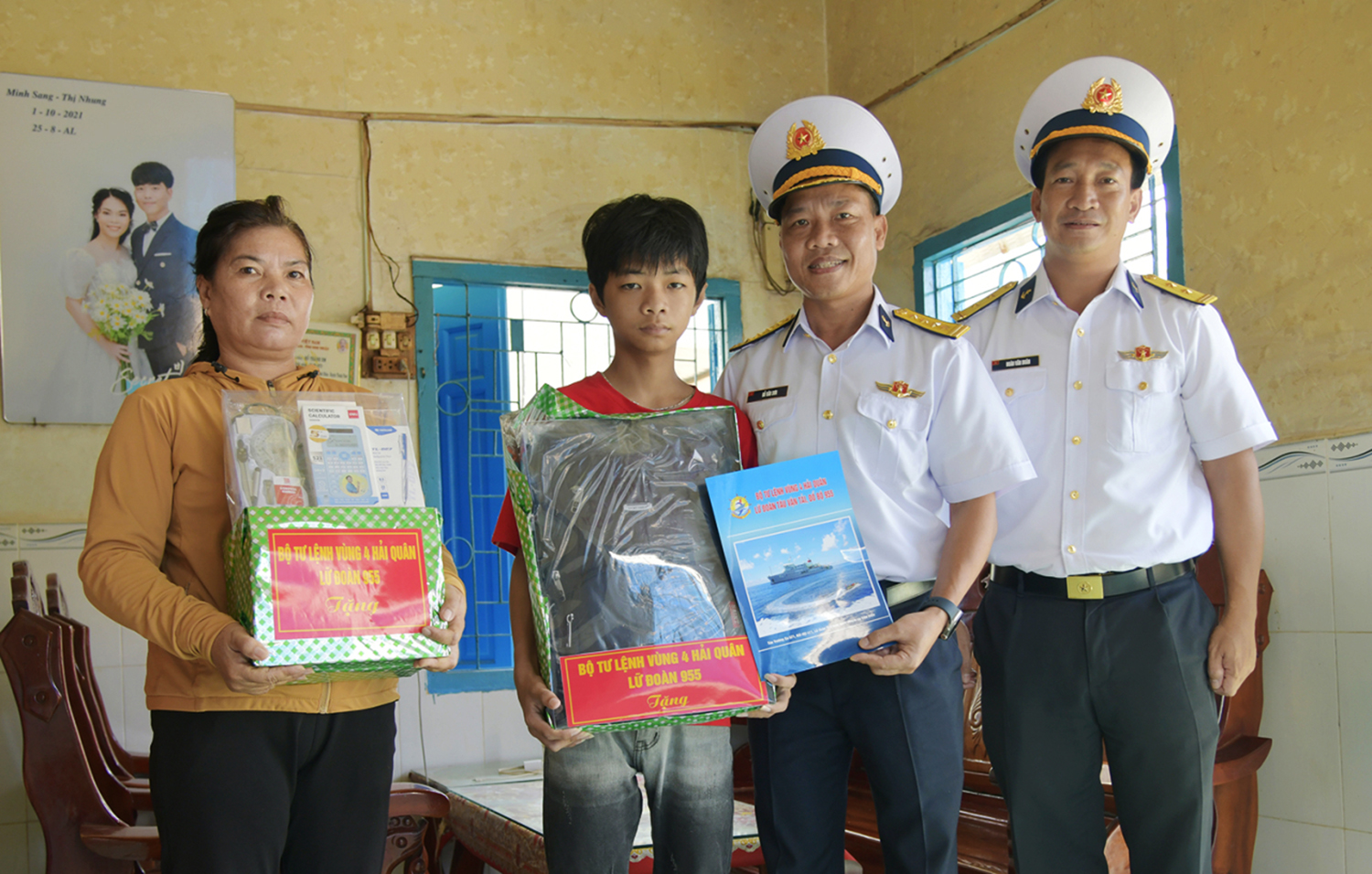 Từ lâu, cán bộ, chiến sĩ Lữ đoàn 955 đã trở thành người bạn đồng hành của ngư dân trên những chuyến vươn khơi. Việc nhận đỡ đầu các cháu con ngư dân có hoàn cảnh đặc biệt khó khăn không chỉ là hỗ trợ về kinh tế, y tế mà còn là sự quan tâm, động viên để các em vượt khó, vươn lên, sớm tự lập trong cuộc sống.