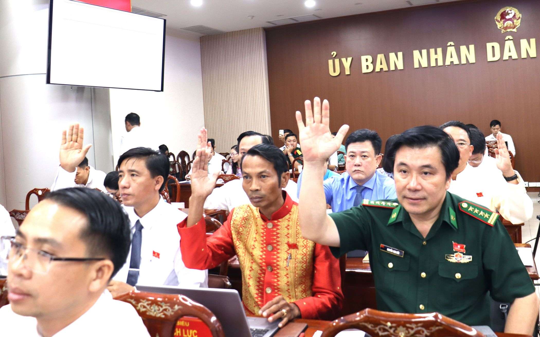 Dưới sự chủ trì của các đồng chí lãnh đạo HĐND tỉnh tại kỳ họp, 100% đại biểu HĐND tỉnh có mặt tại kỳ họp đã thống nhất biểu quyết thông qua đề án về tổ chức hoạt động của lực lượng DQTV.