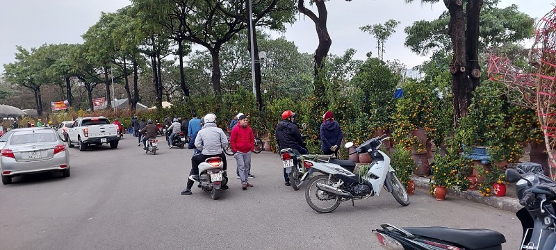 Nhiều chậu hoa mai được đưa ra từ phía Nam cũng rất hút khách