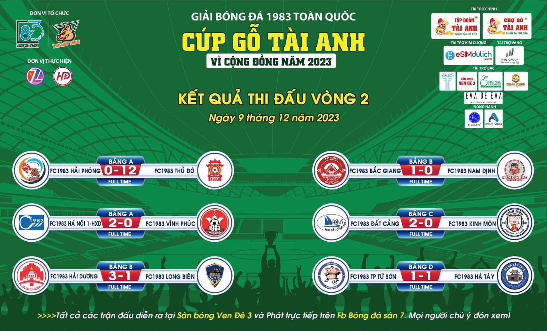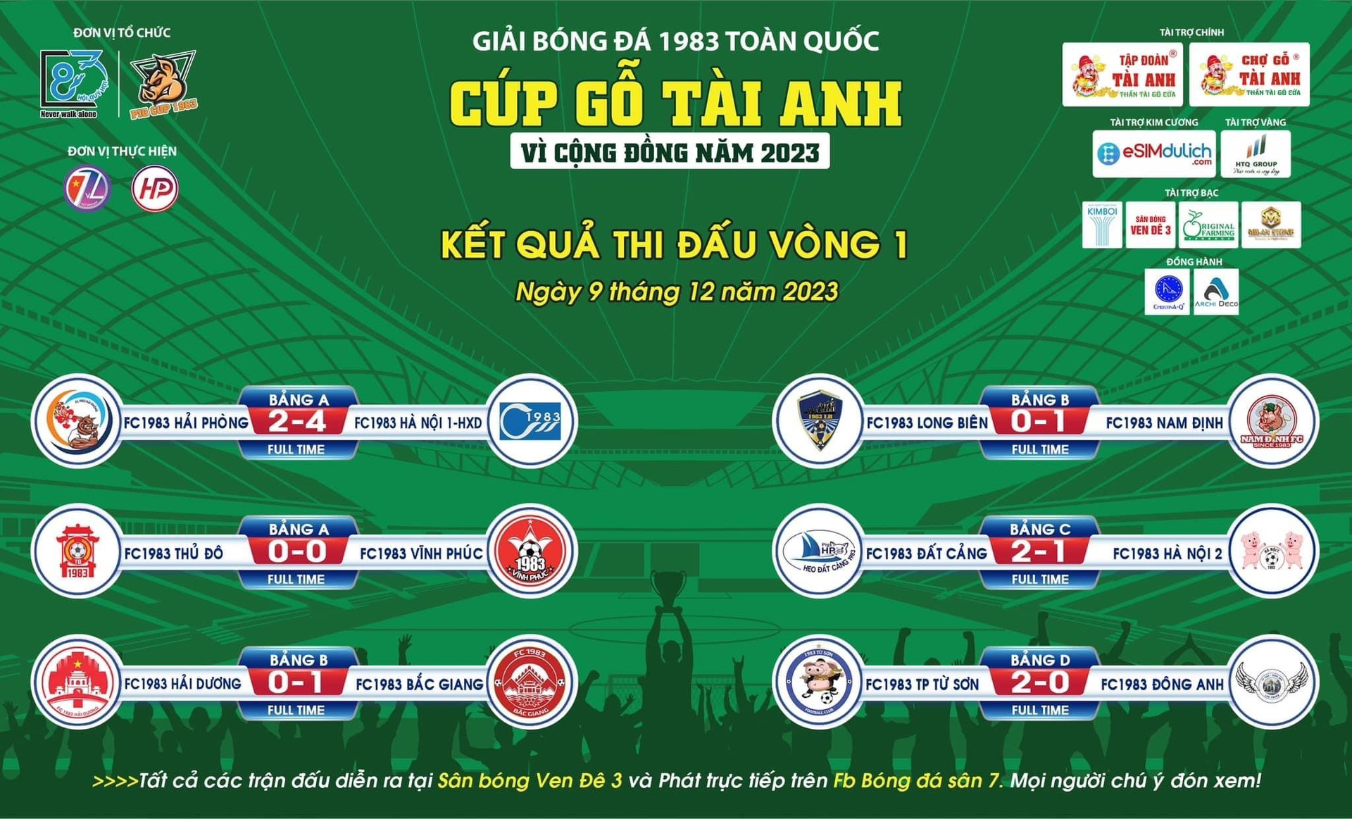 Dưới đây là kết quả các trận đấu trong ngày thi đấu đầu tiên 9/12/2023