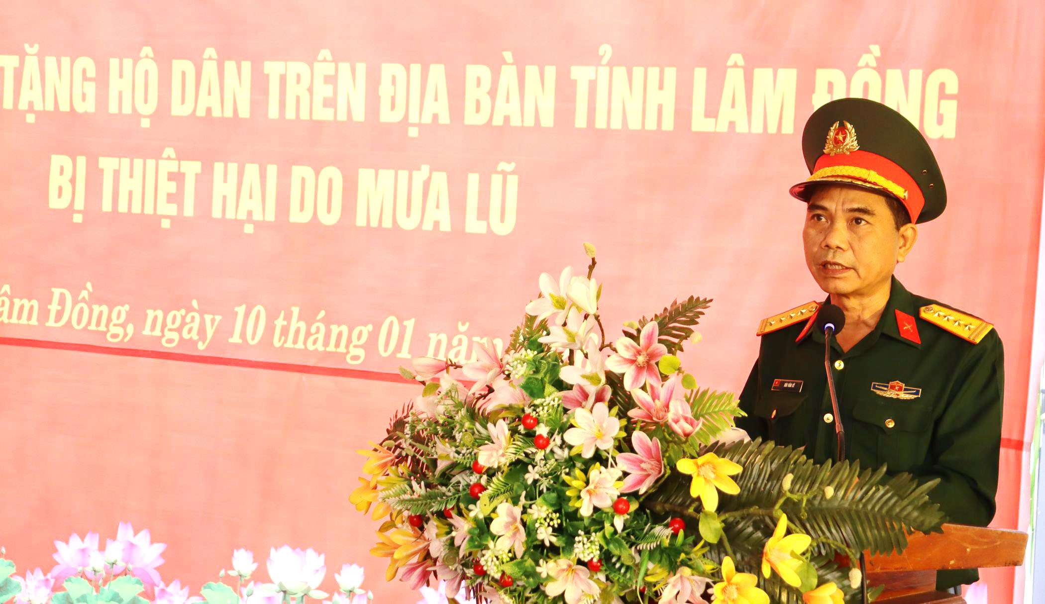 Đại tá Bùi Văn Sỹ nhấn mạnh: Thực hiện “Chiến dịch Quang Trung” do Thủ tướng Chính phủ phát động, những ngày qua, Đảng ủy, Bộ CHQS tỉnh đã chỉ đạo huy động cán bộ chiến sĩ thần tốc sửa chữa, xây dựng lại nhà cho gia đình ông Phạm Văn Hải, thôn 14, xã Cát Tiên. Căn nhà đã được xây dựng lại mới khang trang, giúp cho gia đình an cư lạc nghiệp, sớm ổn định cuộc sống, khắc phục hậu quả thiên tai.