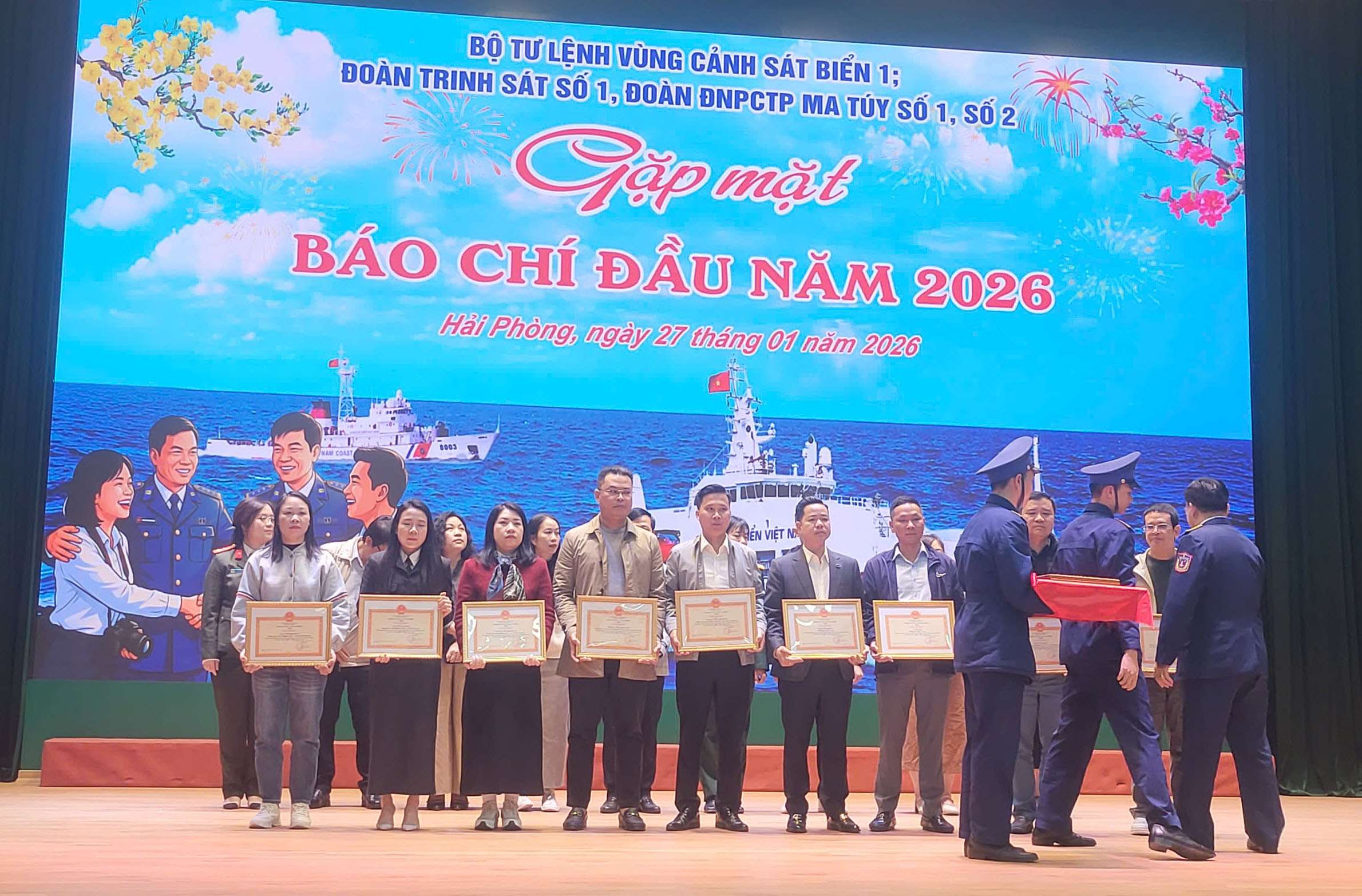 Tại buổi gặp mặt, Thủ trưởng BTL Vùng Cảnh sát biển 1 đã trao Giấy khen của BTL Vùng cho 4 tập thể và 26 cá nhân có nhiều thành tích trong công tác phối hợp tuyên truyền năm 2025.