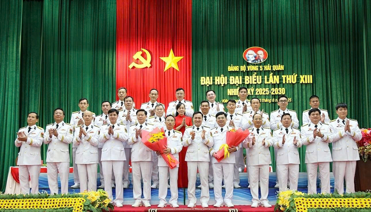 Ban chấp hành Đảng bộ Vùng 5 Hải quân nhiệm kỳ 2025-2030 và Đoàn đại biểu đi dự đại hội cấp trên ra mắt Đại hội.