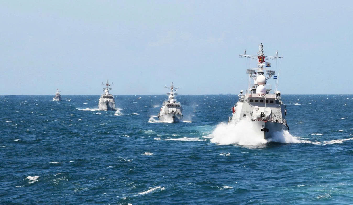 Các biên đội tàu chiến đấu của Vùng 5 Hải quân huấn luyện trên biển.