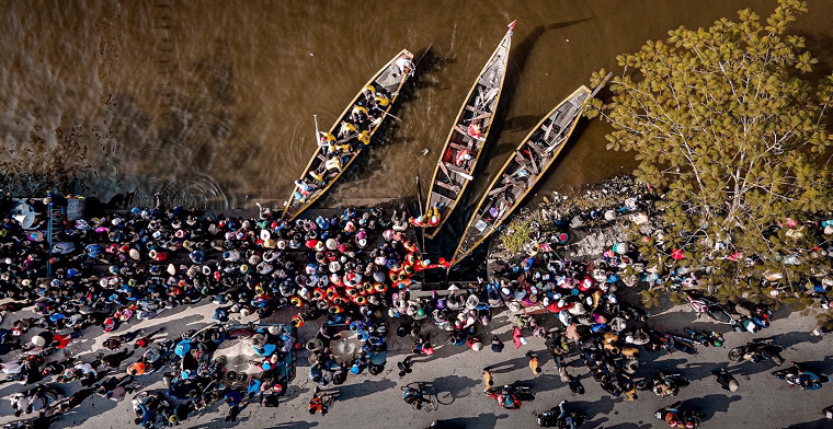Nhân dân nô nức tham gia cổ vũ cho các đội thi bơi chải truyền thống